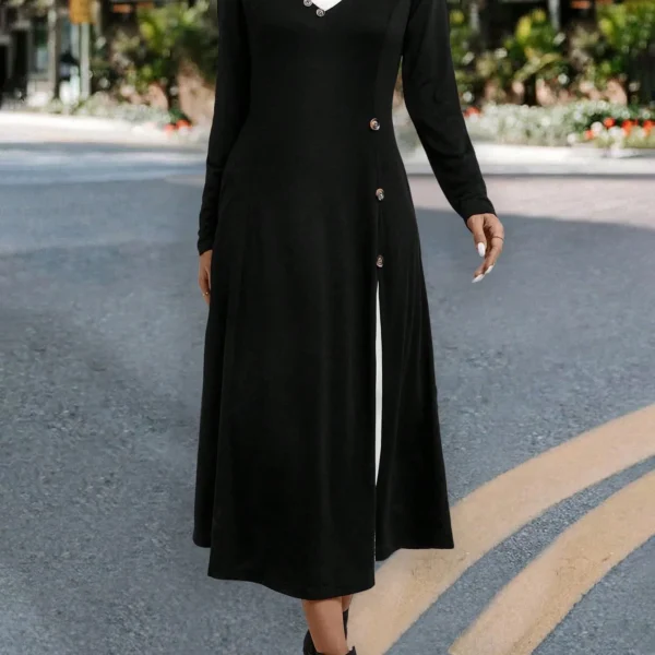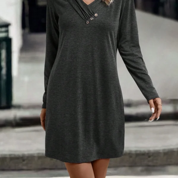 SMY Elegant Trend Small V-Neck Long Sleeved Dress With Buttons