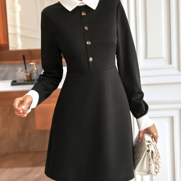 SMY Elegant Trend Flat Collar Long Sleeved Dress