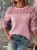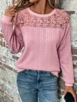 SMY Clasi Women’s Elegant Fashionable Hollow Lace Patchwork Shirt