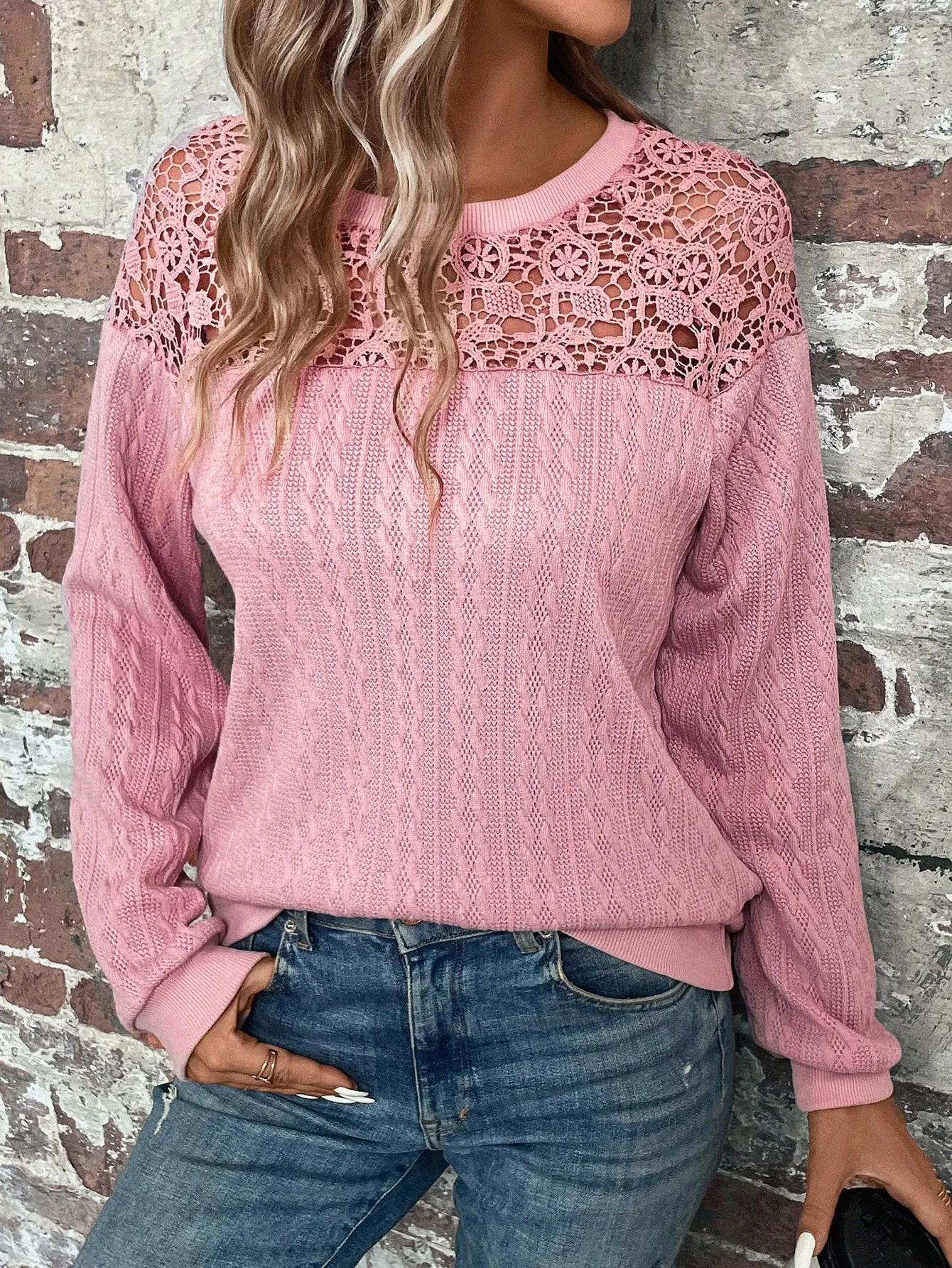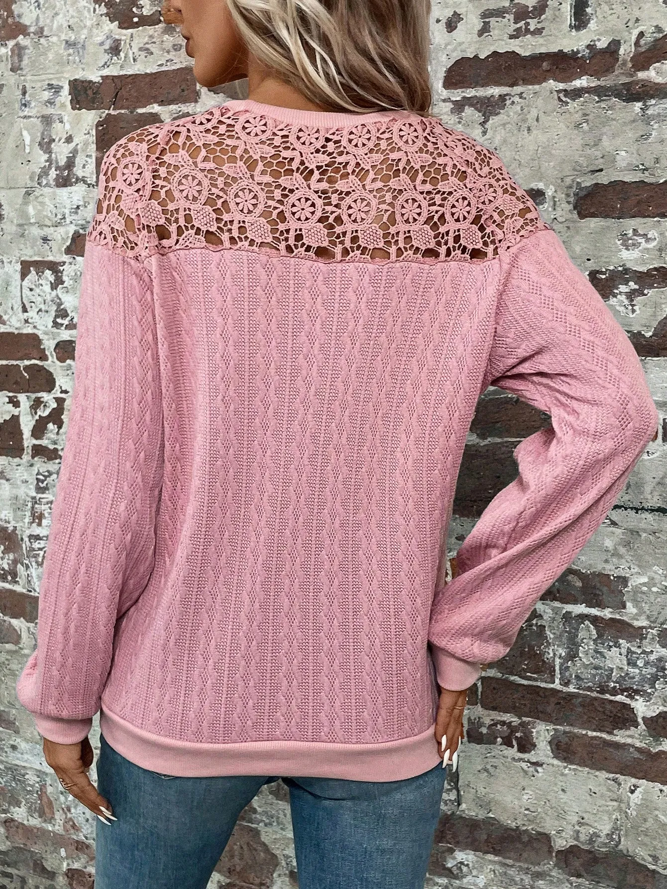 SMY Contrast Guipure Lace Drop Shoulder Sweatshirt