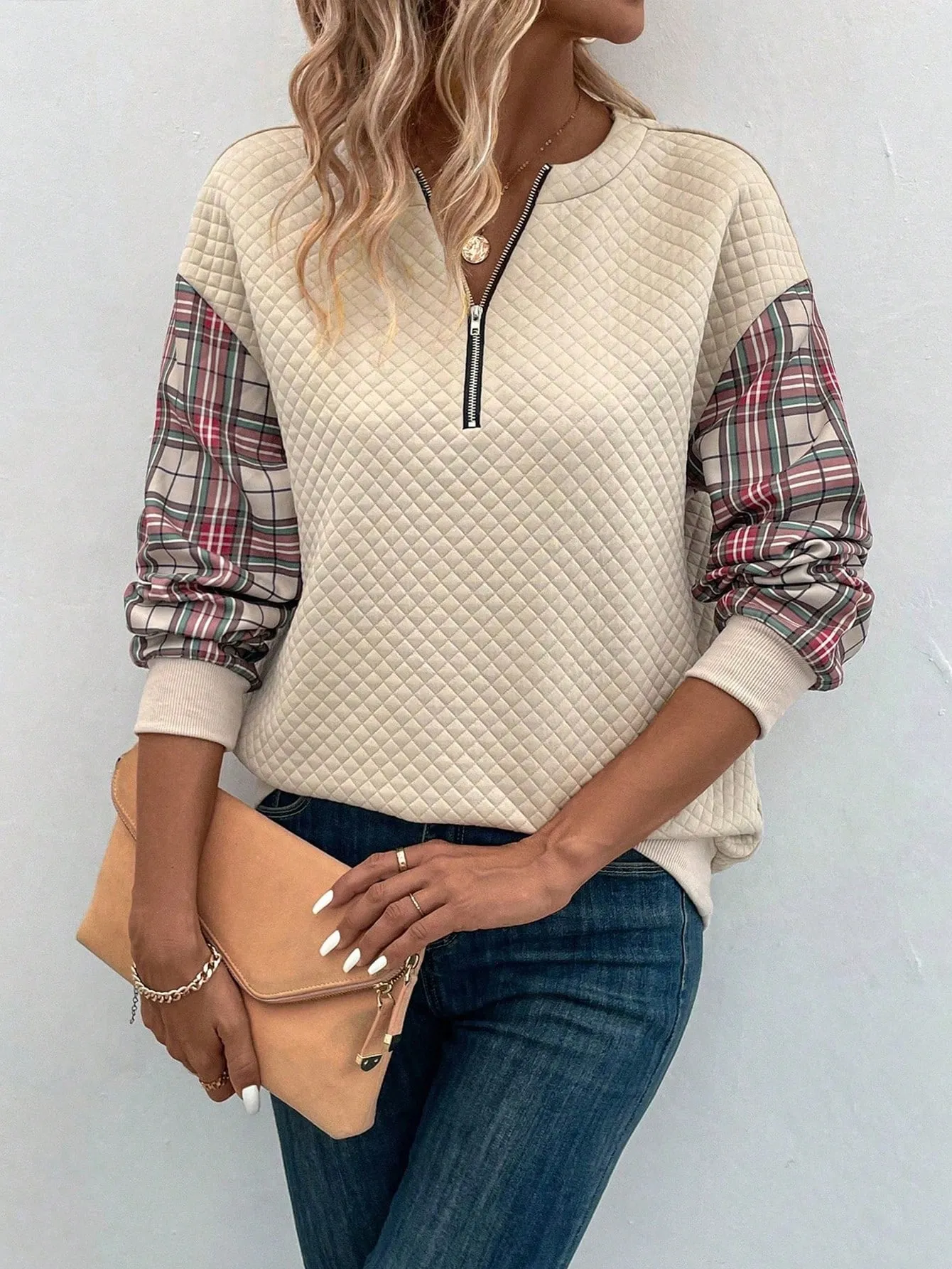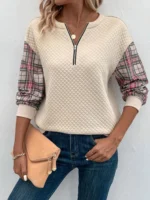 Be the first to review “SMY Contrast Plaid Print Half Zip Drop Shoulder Sweatshirt” Cancel reply