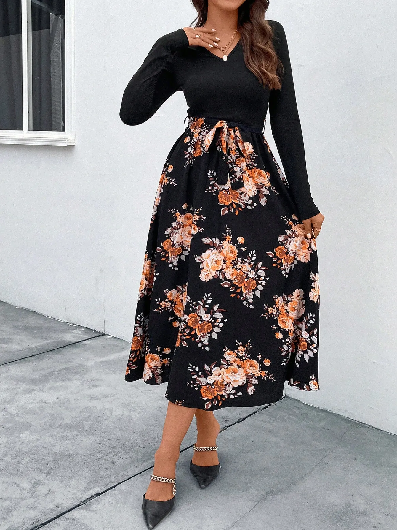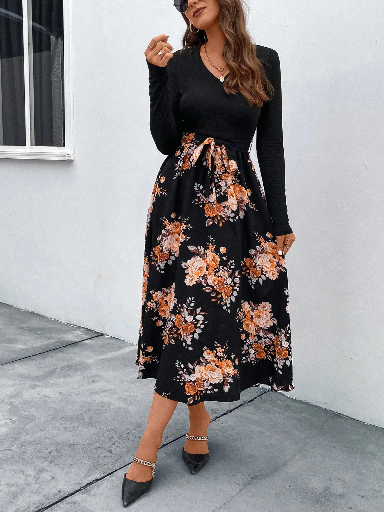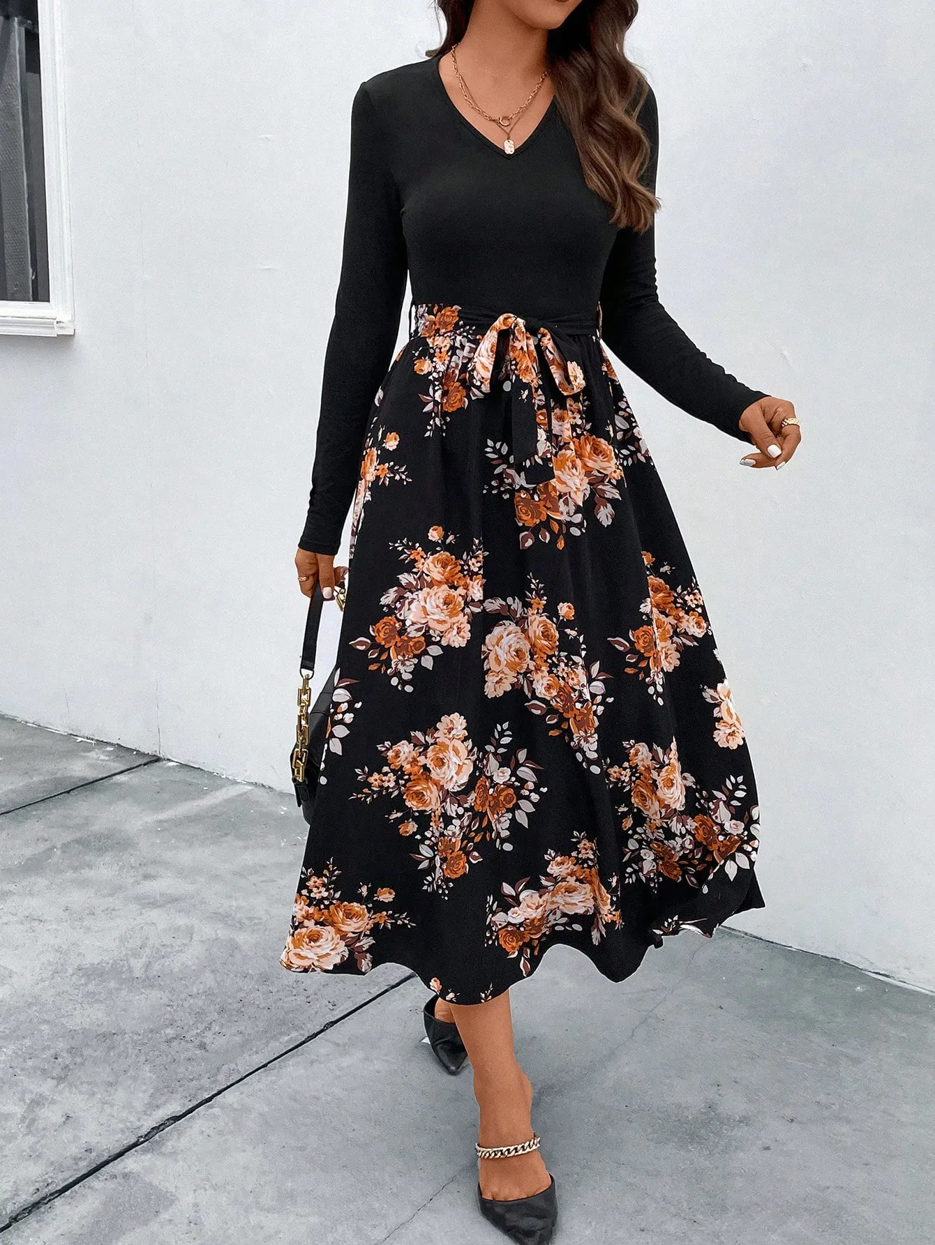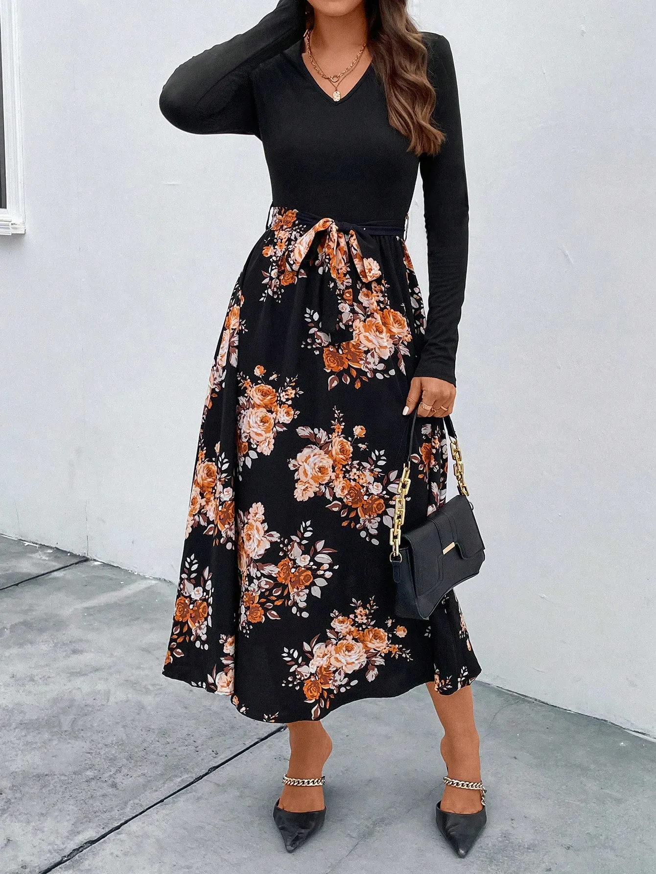 SMY Floral Print Belted Dress