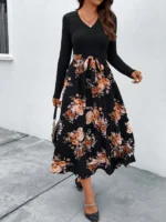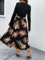 SMY Women’s Patchwork Plant Printed Short Flying Sleeve A-Line Dress