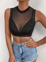 Be the first to review “SMY Polka Dot Mock Neck Mesh Top Without Bra” Cancel reply