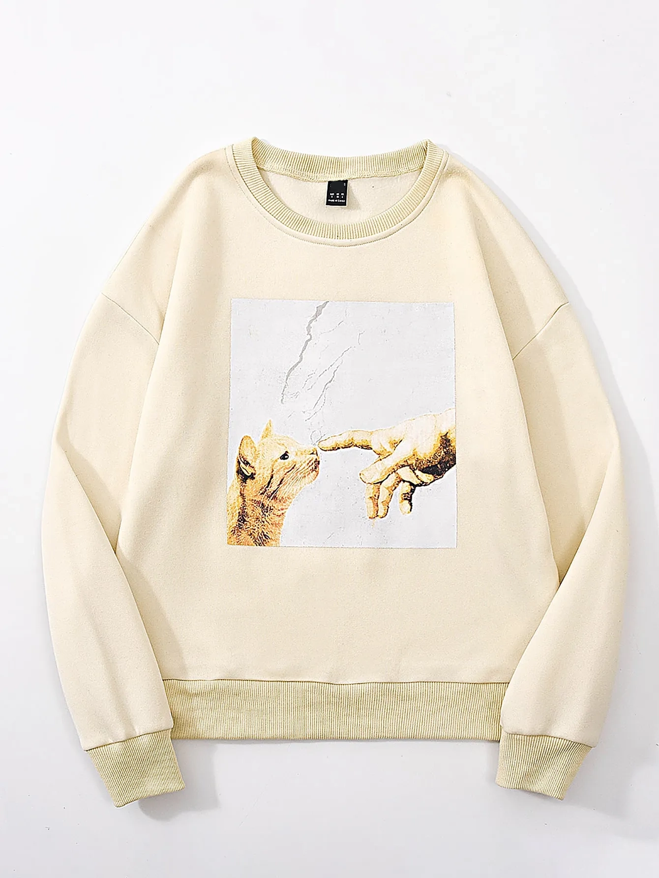 SMY Casual Cat Pattern Round Neck Regular Printed Hoodie