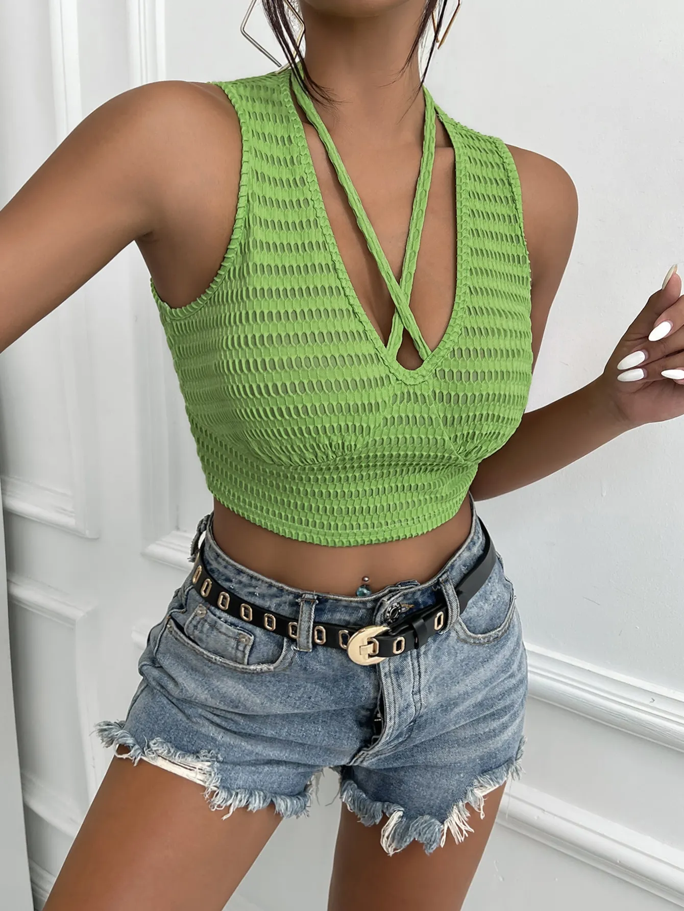 Home Tops Tank Tops SMY Casual Cross Band V-Neck Sling