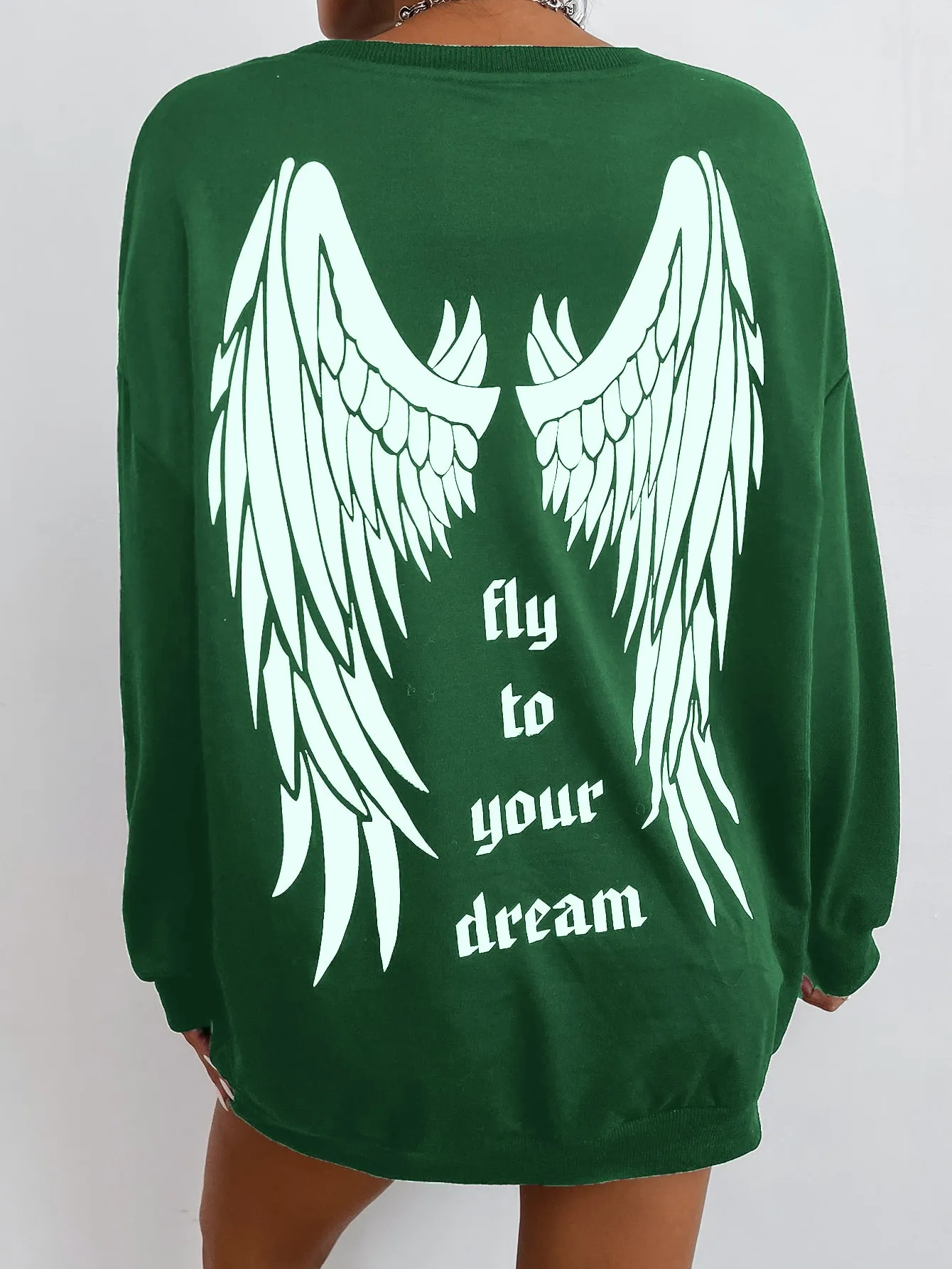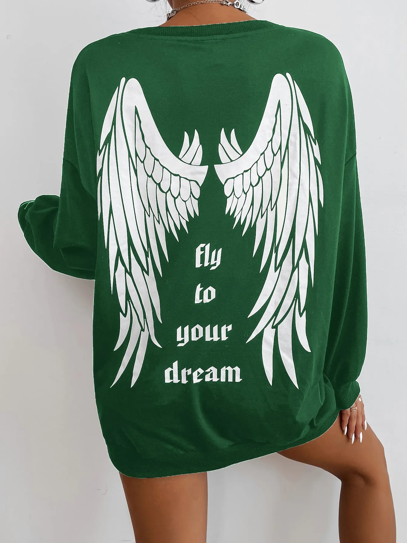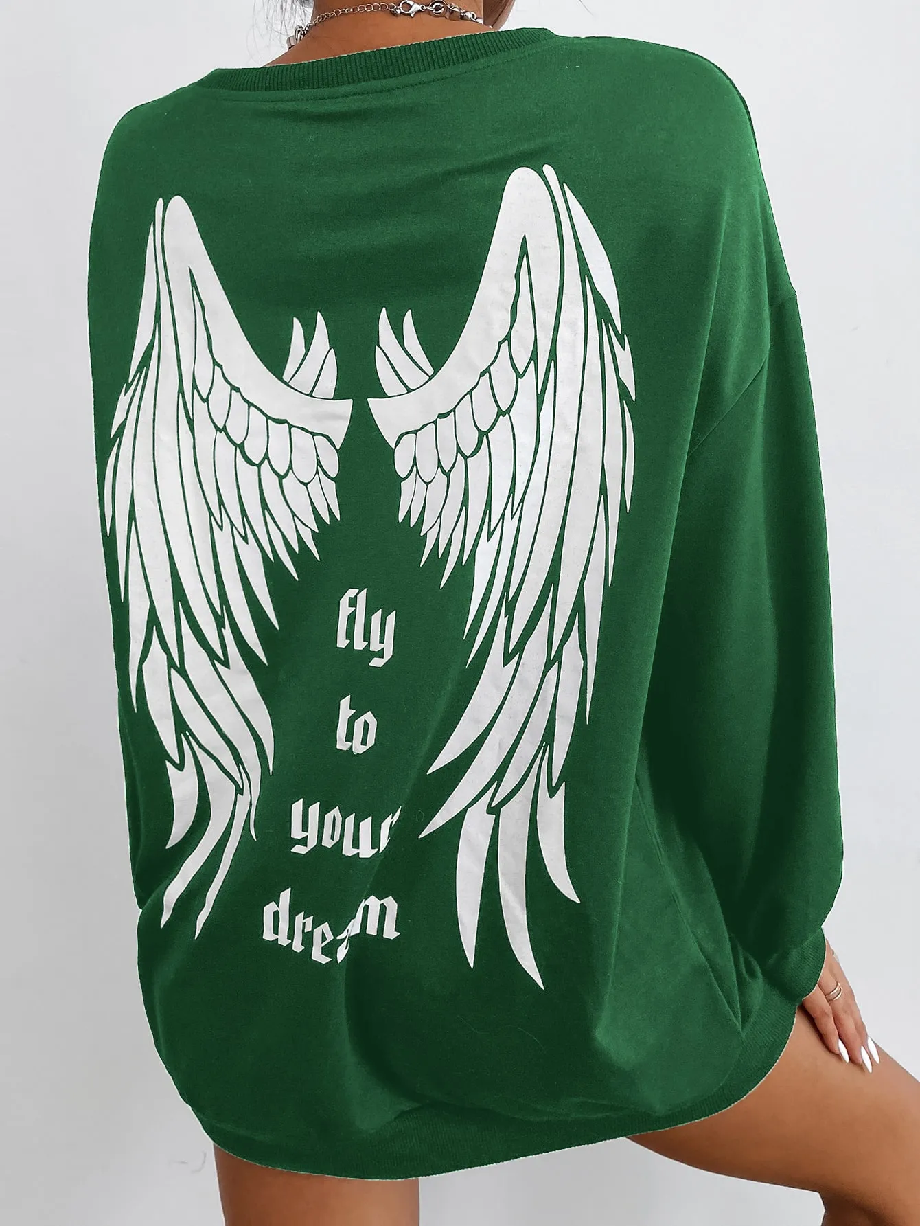 SMY Casual Double Wings Pattern Round Neck Long Hoodie