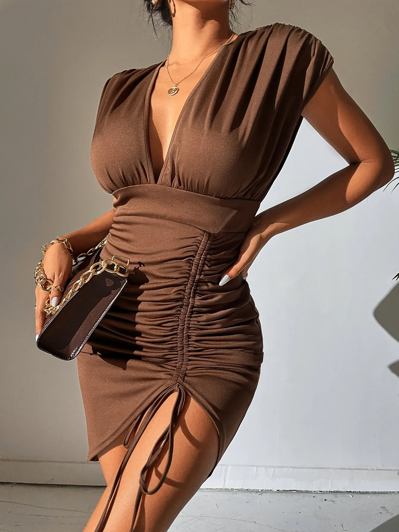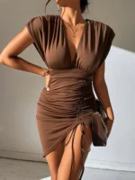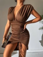 SMY Casual Drawstring Deep V-Neck Dress