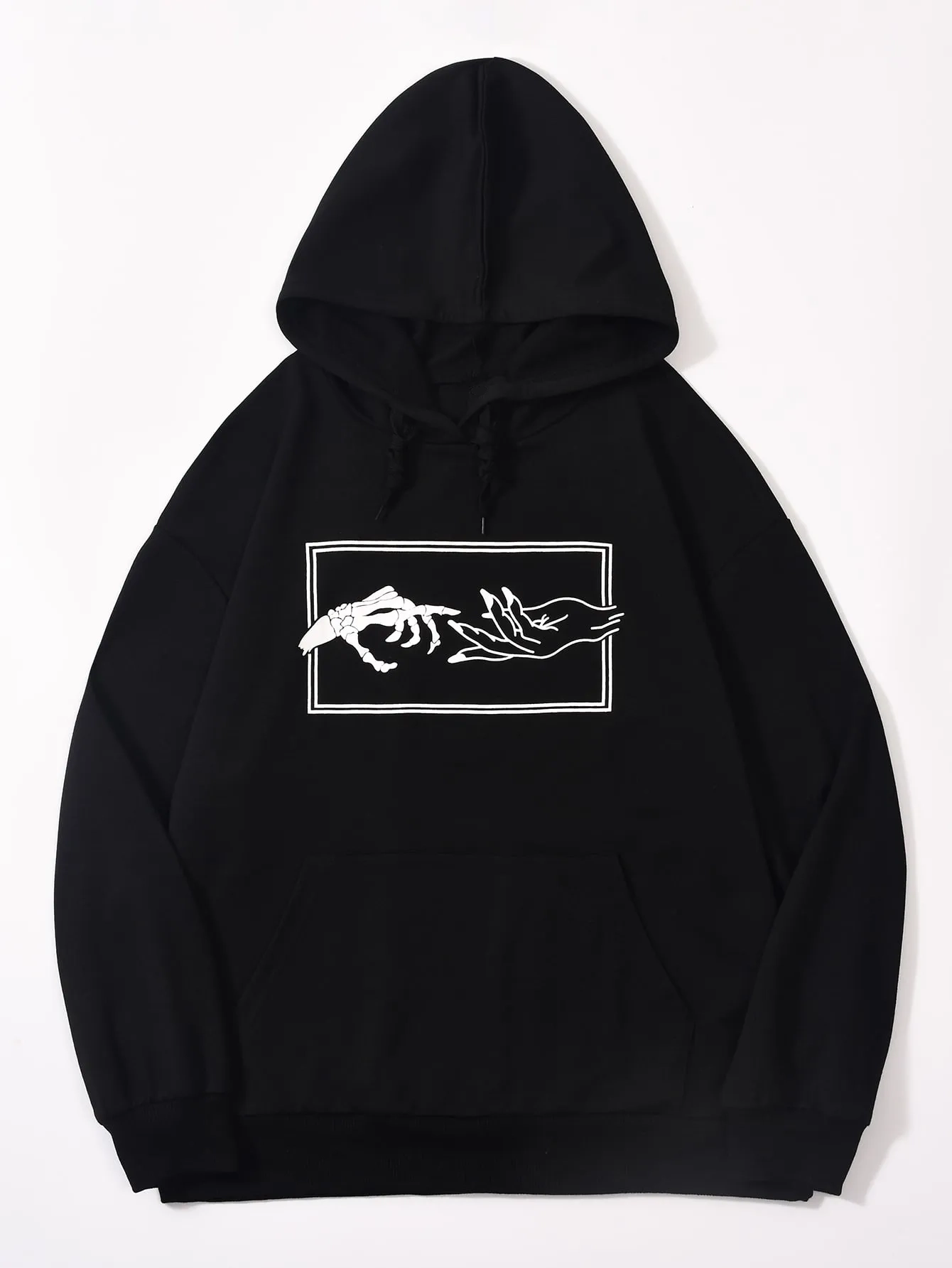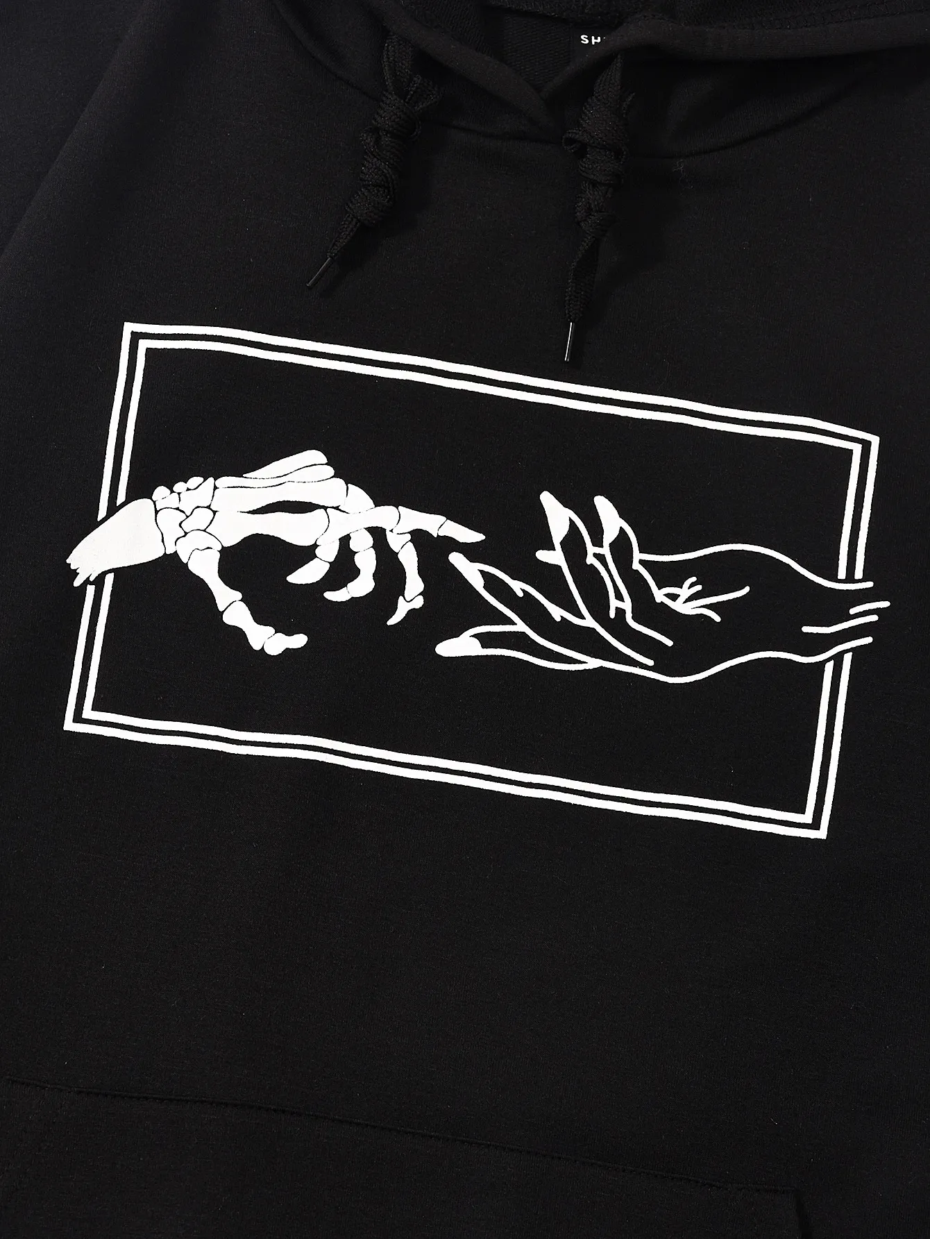SMY Casual Drawstring Skeleton Hand Pattern Hooded Regular Hoodie