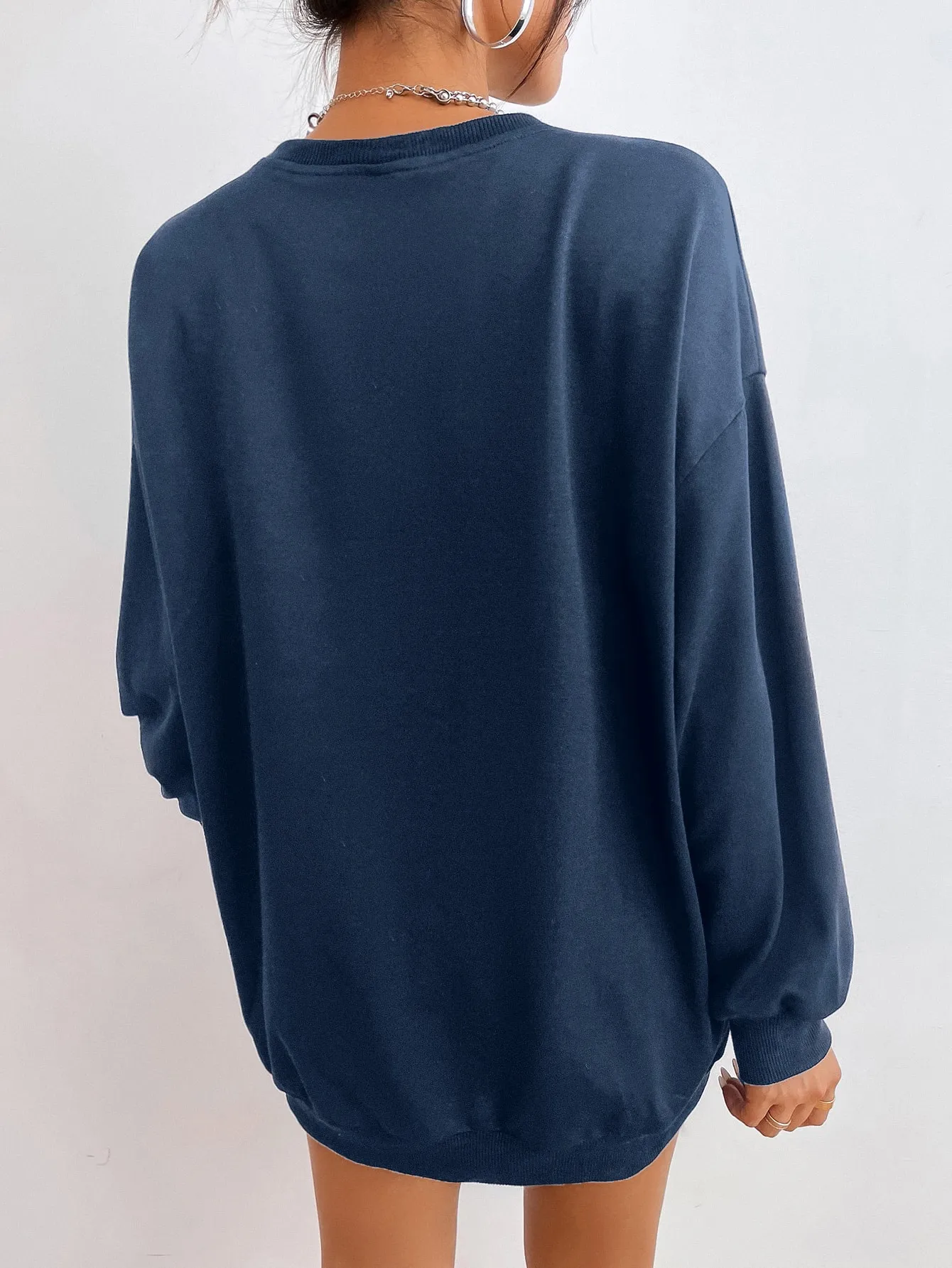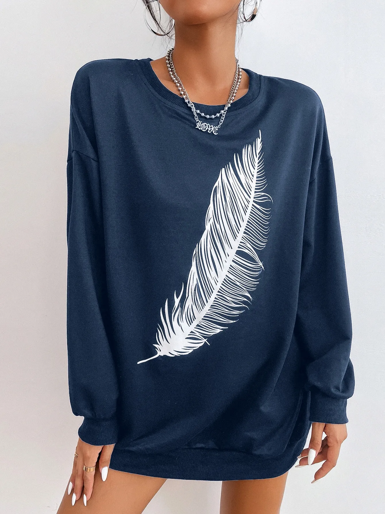 SMY Casual Feather Pattern Round Neck Long Hoodie