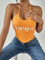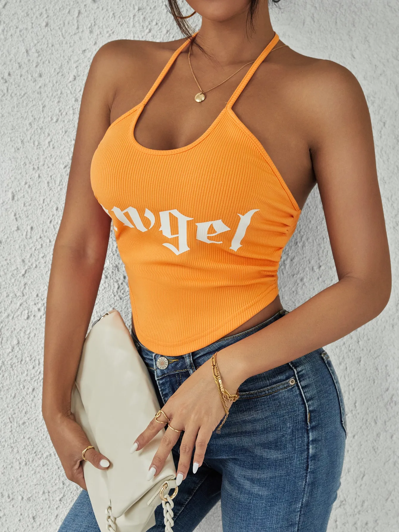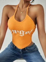 SMY Casual Letter Printed Angel Neck Strap