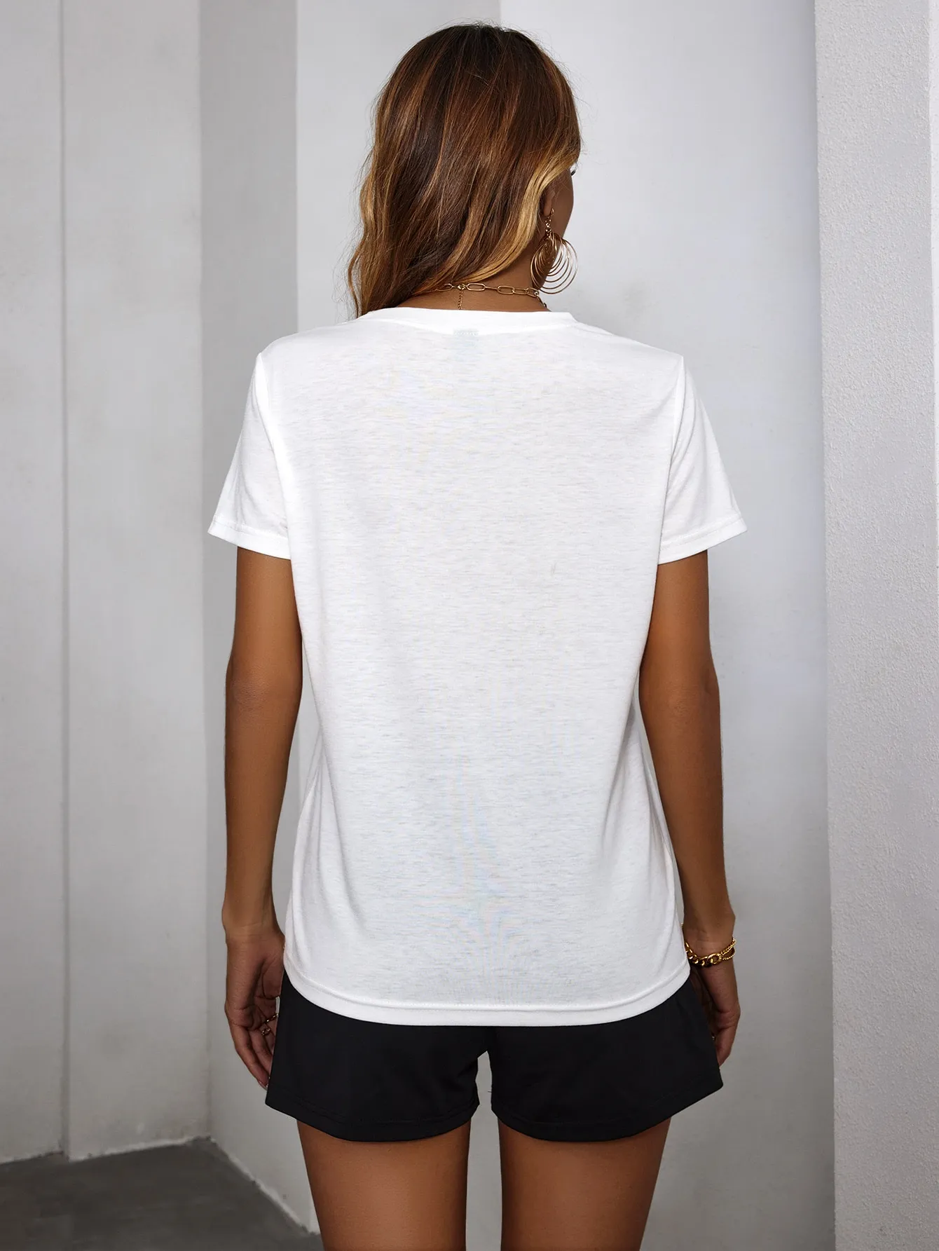 SMY Two Piece Set Of Casual Letter Printed LOS ANGELES Round Neck Shorts