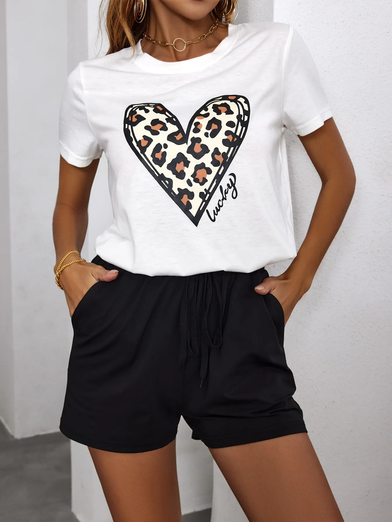 Home Two-piece Outfits Short Sets SMY Casual Love Pattern Round Neck Set