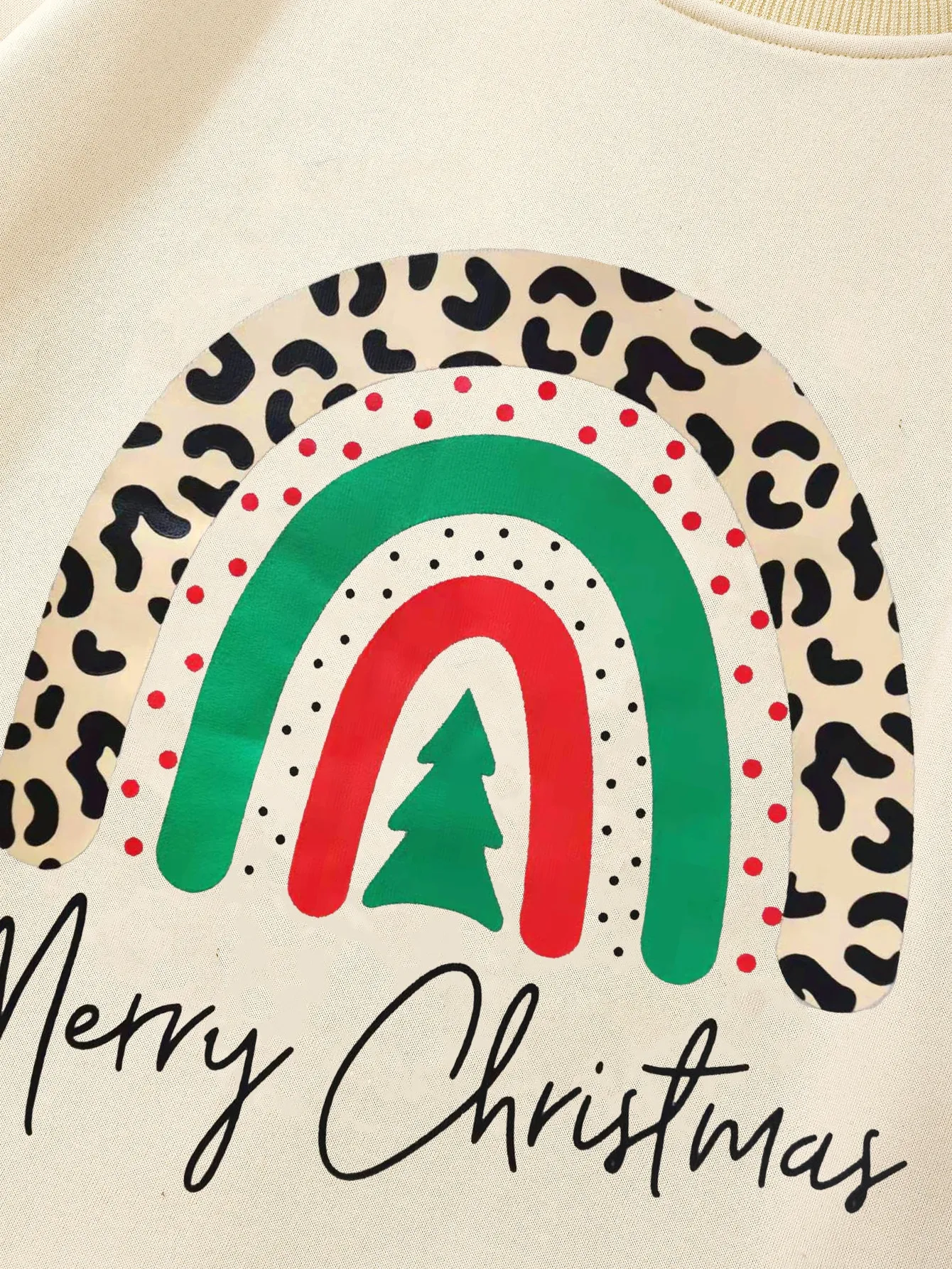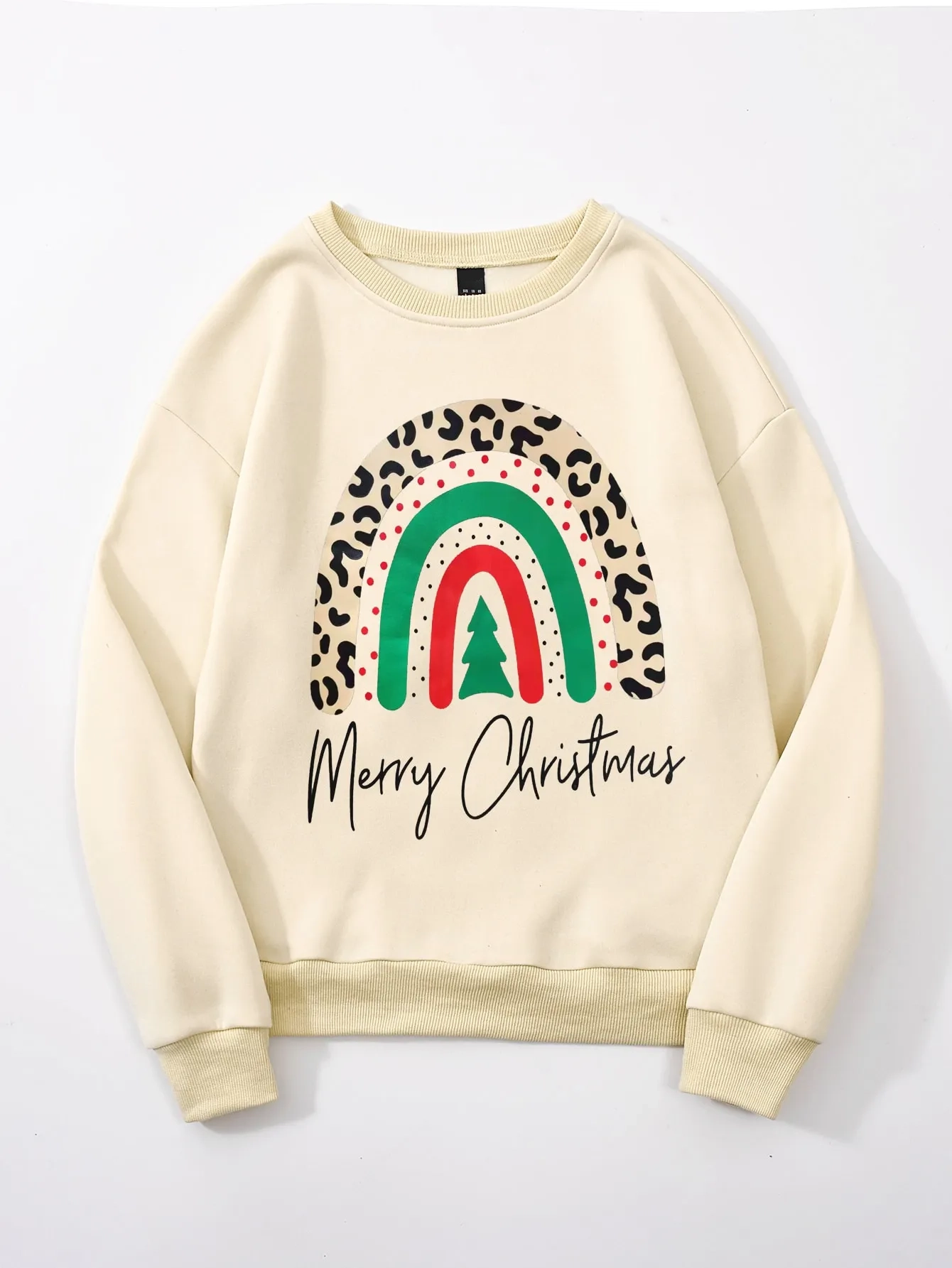 SMY Casual Rainbow Pattern Round Neck Regular Printed Hoodie For Christmas