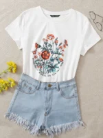 Be the first to review “SMY Casual Round Neck Hand Drawn Flower Pattern Plus Size T-Shirt” Cancel reply
