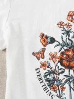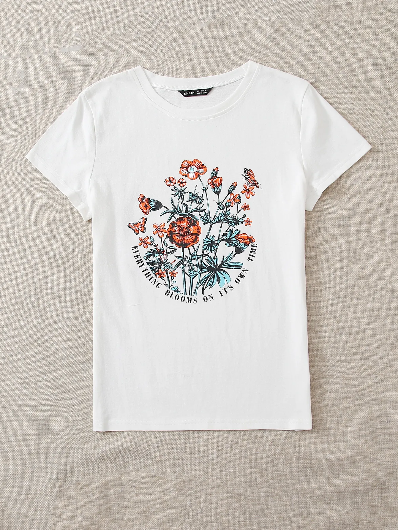 SMY Casual Round Neck Hand Drawn Flower Pattern Plus Size T-Shirt