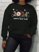 SMY Casual Women’s Christmas Print Round Neck Long Hoodie