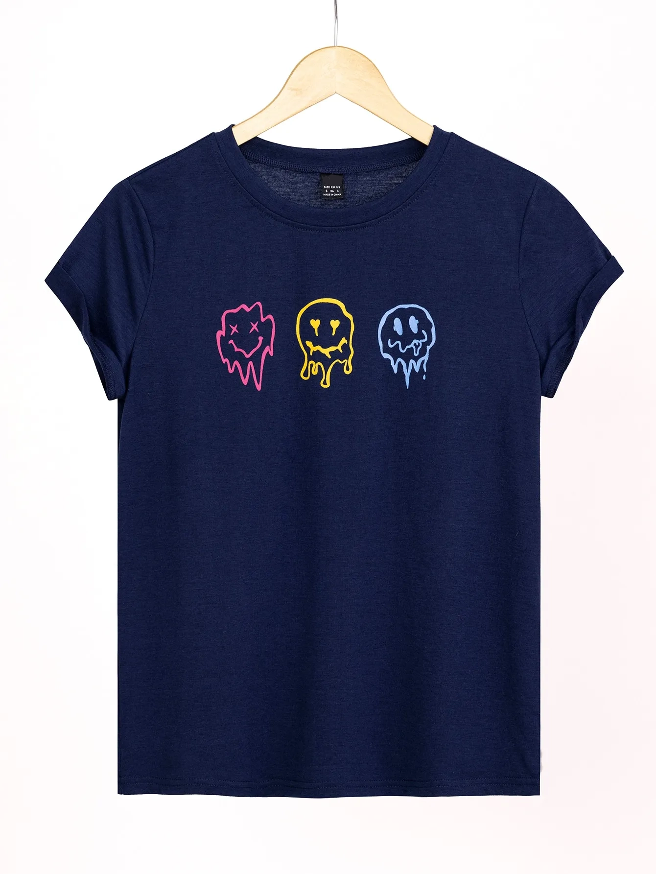 SMY Casual Round Neck Smiley Tee