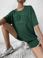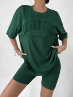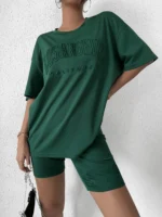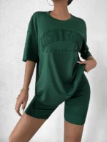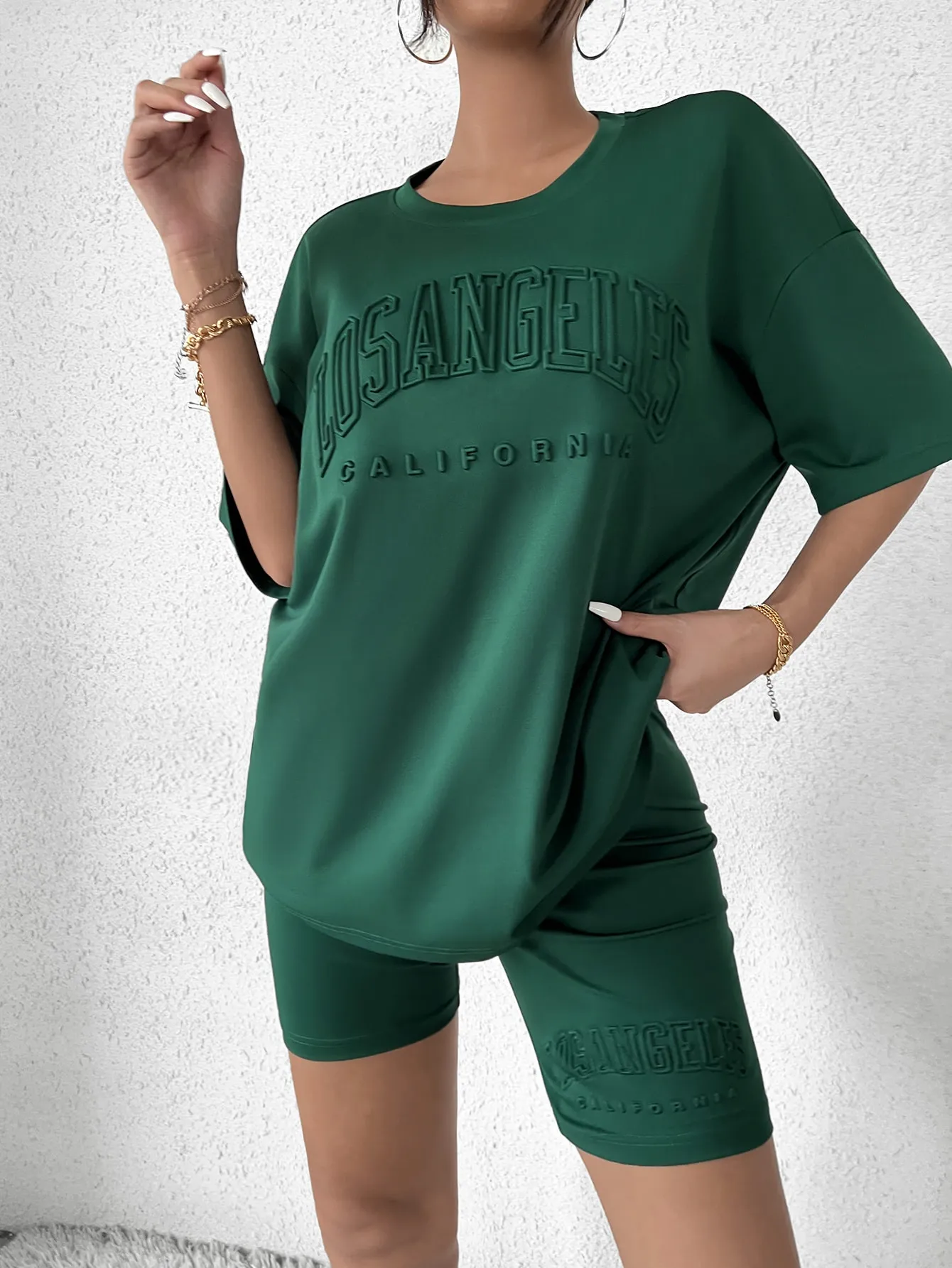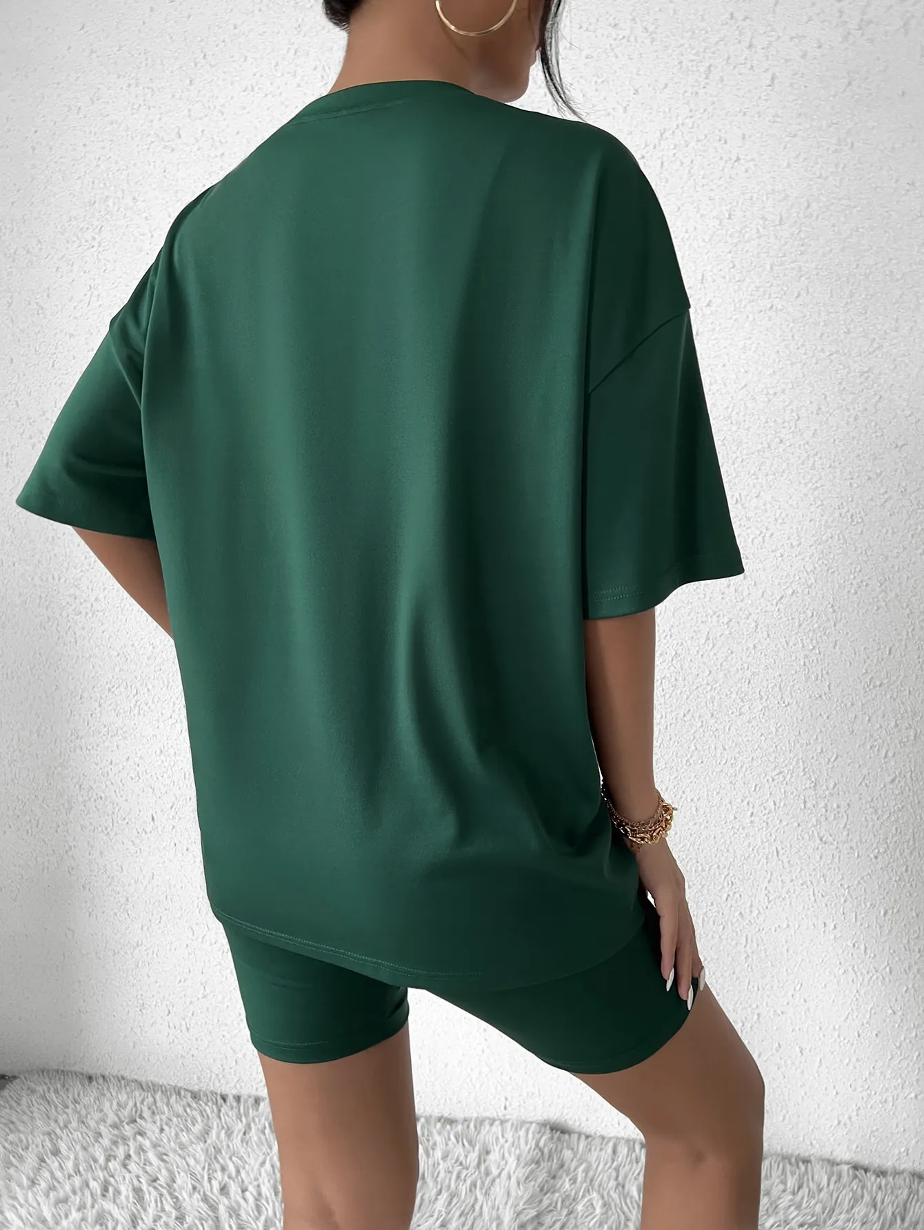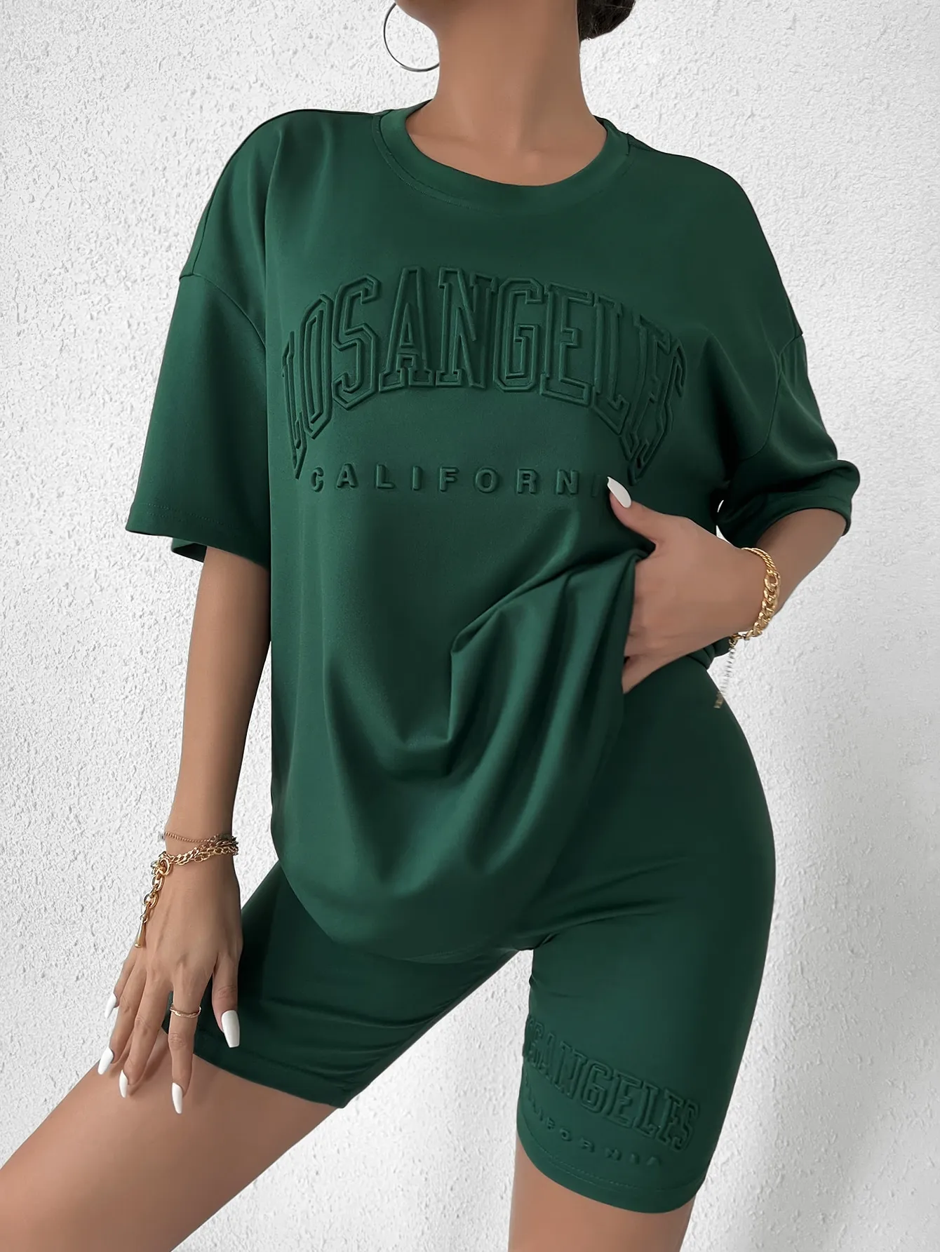 SMY Letter Pattern Drop Shoulder Tee & Biker Shorts
