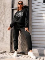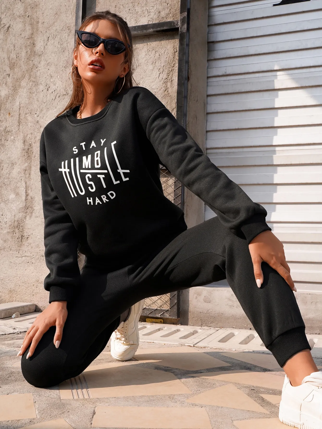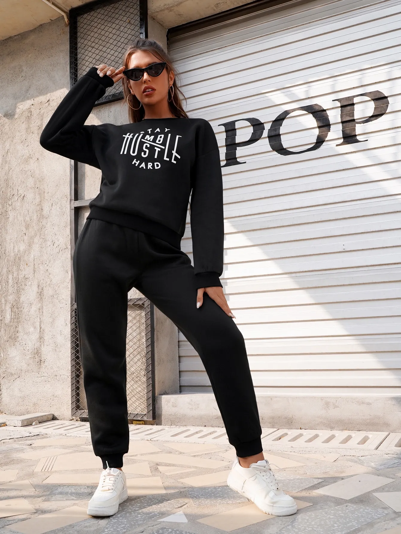 SMY Letter Graphic Drop Shoulder Sweatshirt & Sweatpants