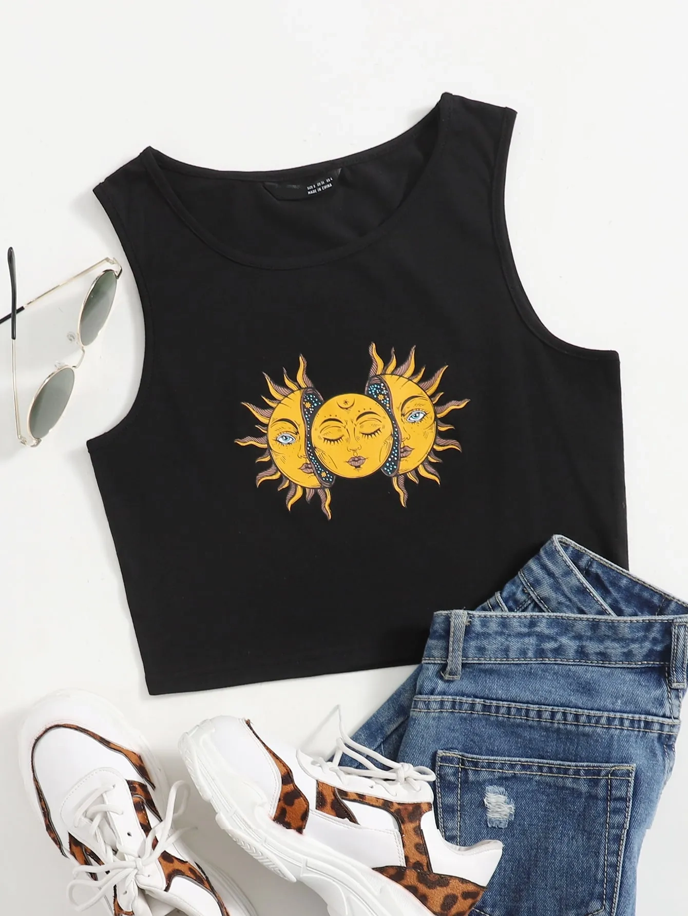 SMY Casual Sun Pattern Round Neck Vest