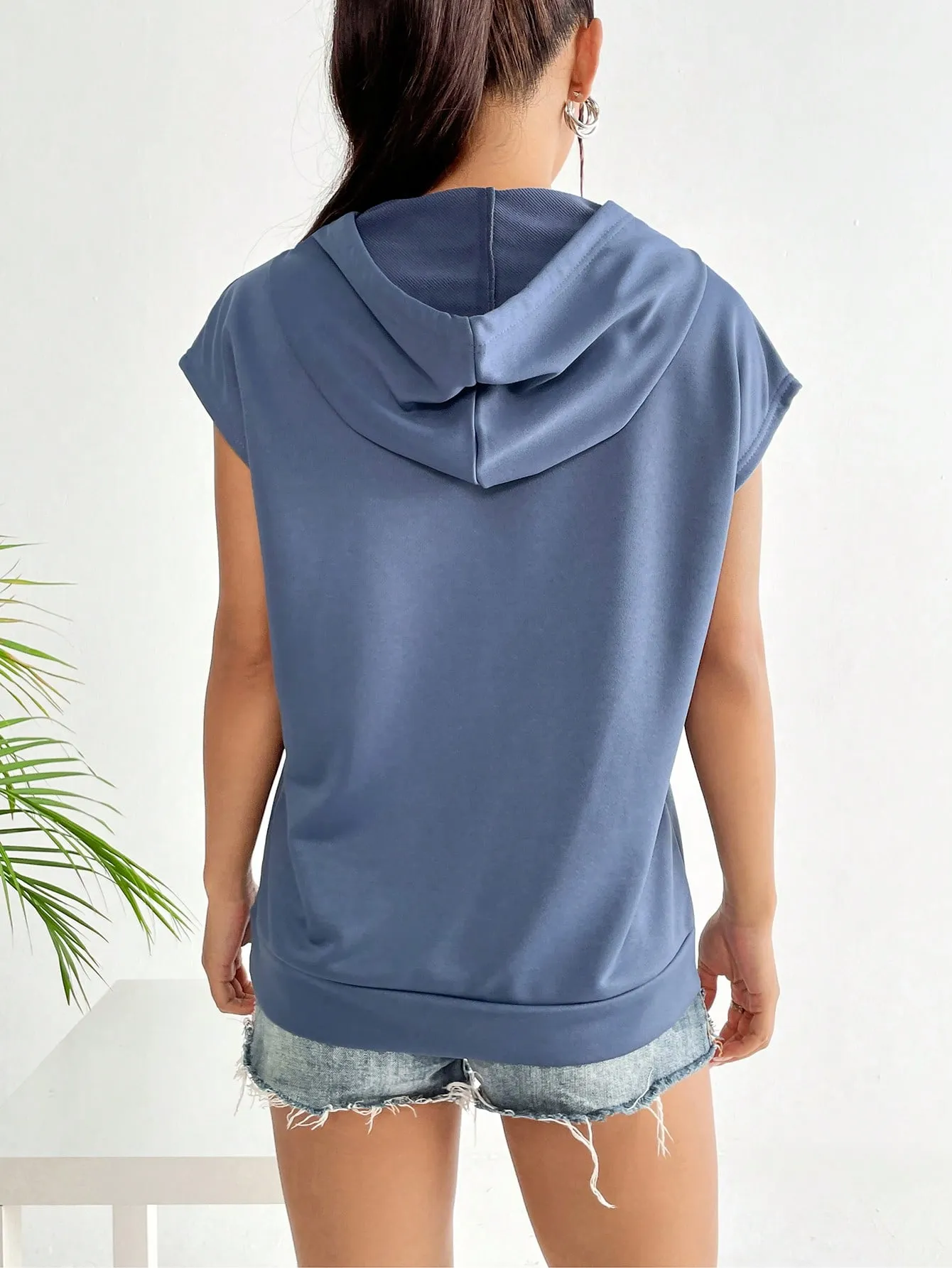 SMY Women’s V-neck Pleated Button Detail Casual T-shirt