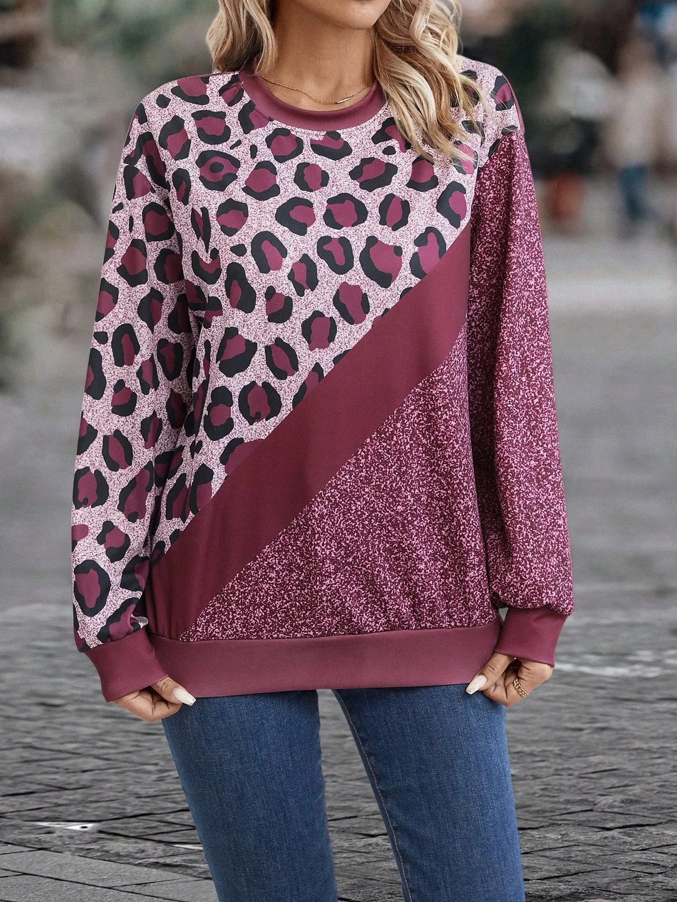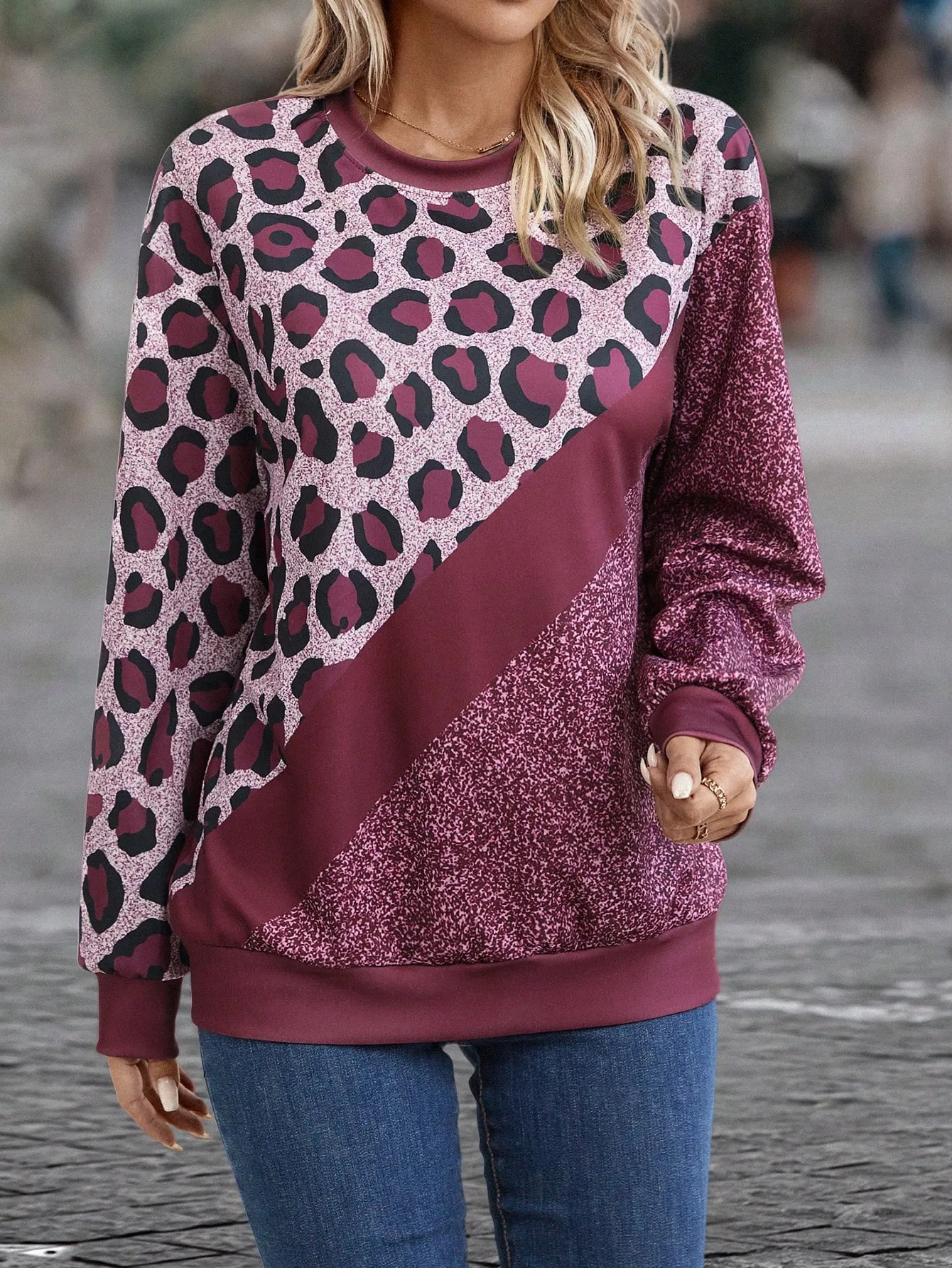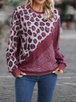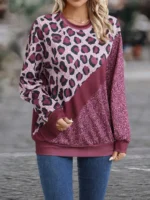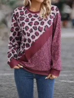 SMY Women’s Casual Contrast Color Patchwork Design Pullover Sweatshirt