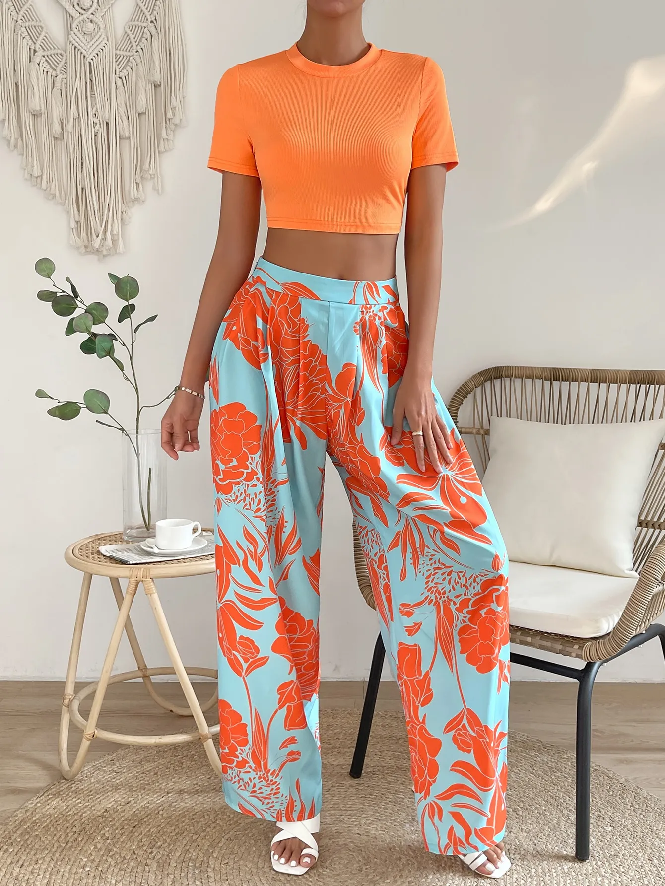 SMY Casual Trend Small Stand Collar Women’s Two-Piece Set