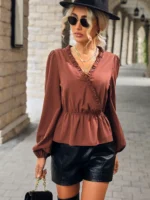 SMY Clasi Women’s Elegant Fashionable Hollow Lace Patchwork Shirt