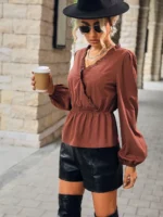 Home Tops Blouses & Shirts SMY Casual V-Neck Long Sleeved Shirt