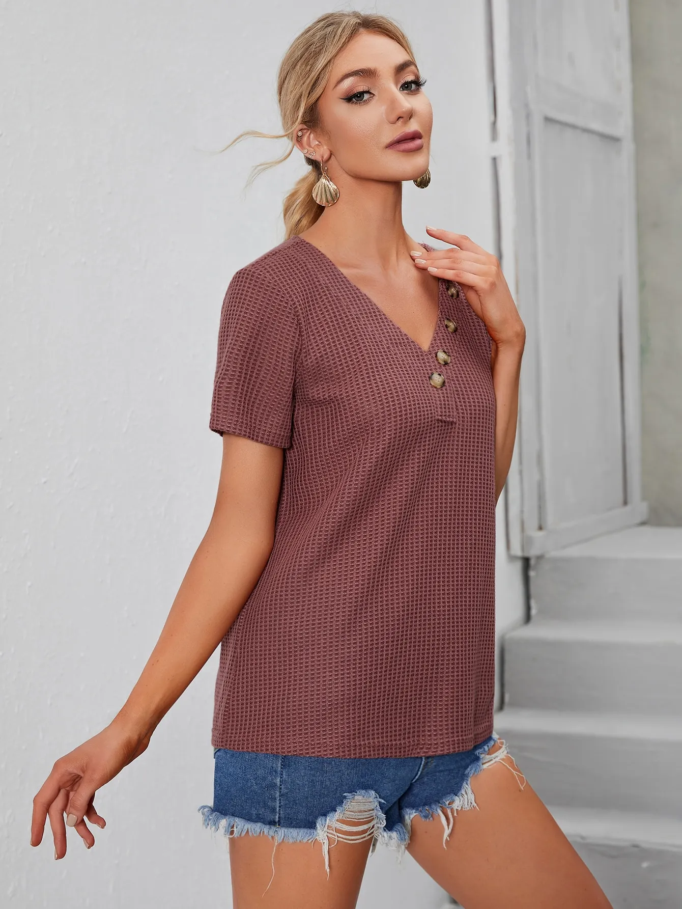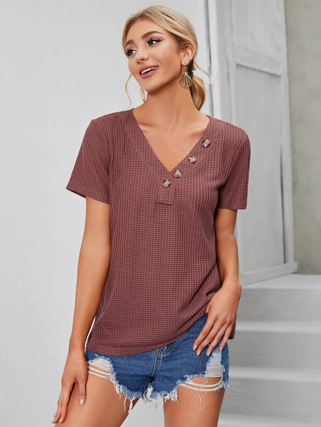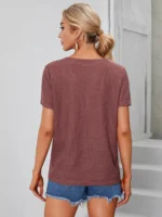 SMY Casual V-Neck Short Sleeved T-Shirt,Summer