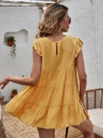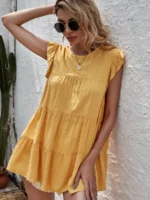 SMY Women’s V-neck Pleated Button Detail Casual T-shirt