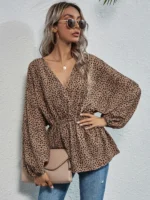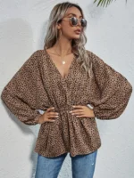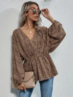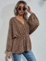 SMY Small V-Neck Floral Pattern Shirt For Spring, Autumn $13.24