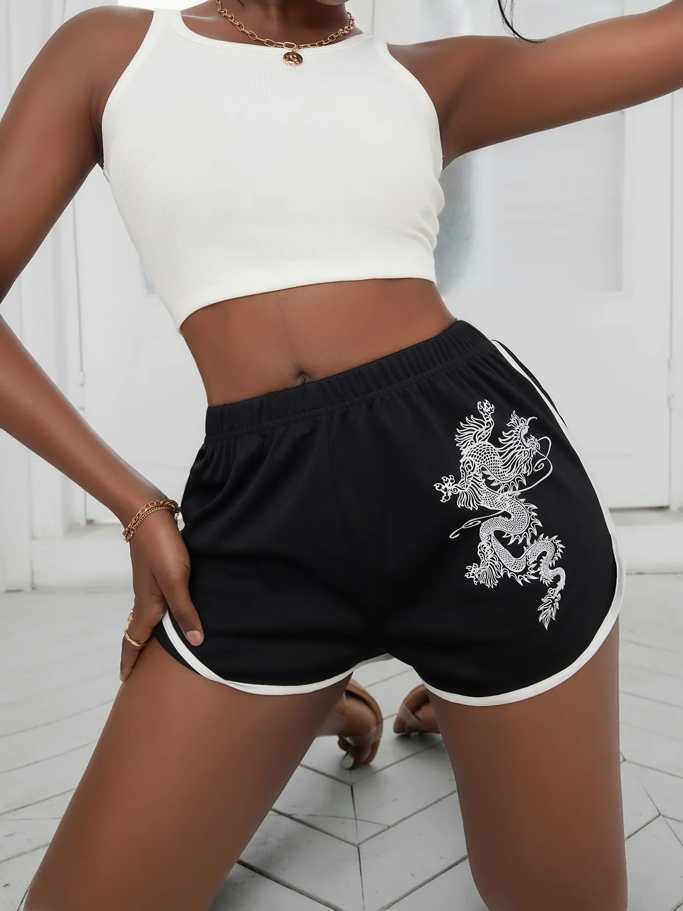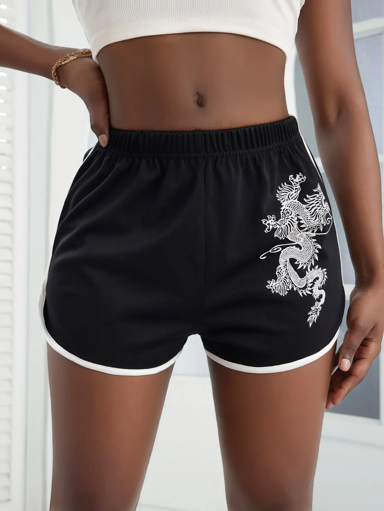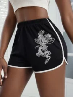 SMY Dragon Pattern Casual Shorts For Spring, Summer