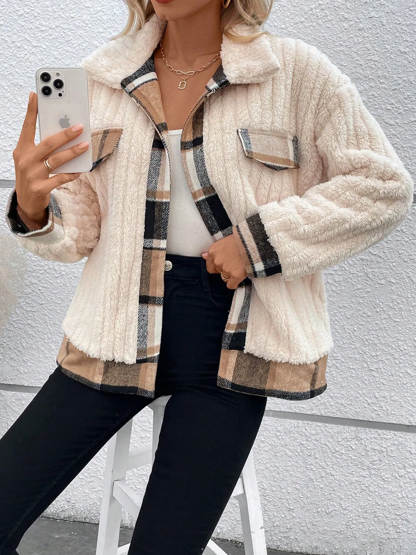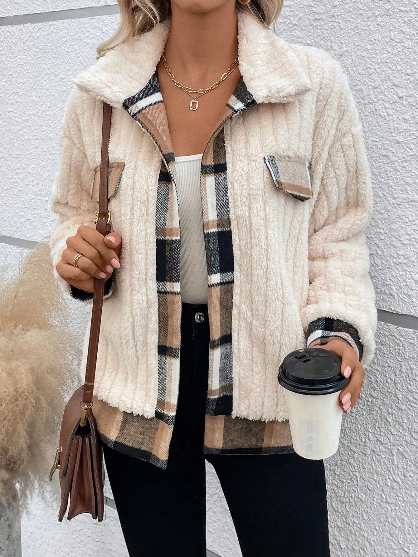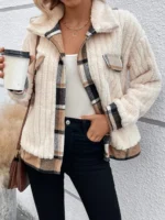 SMY Clasi Women’s Plaid Print Lapel Loose Fit Coat