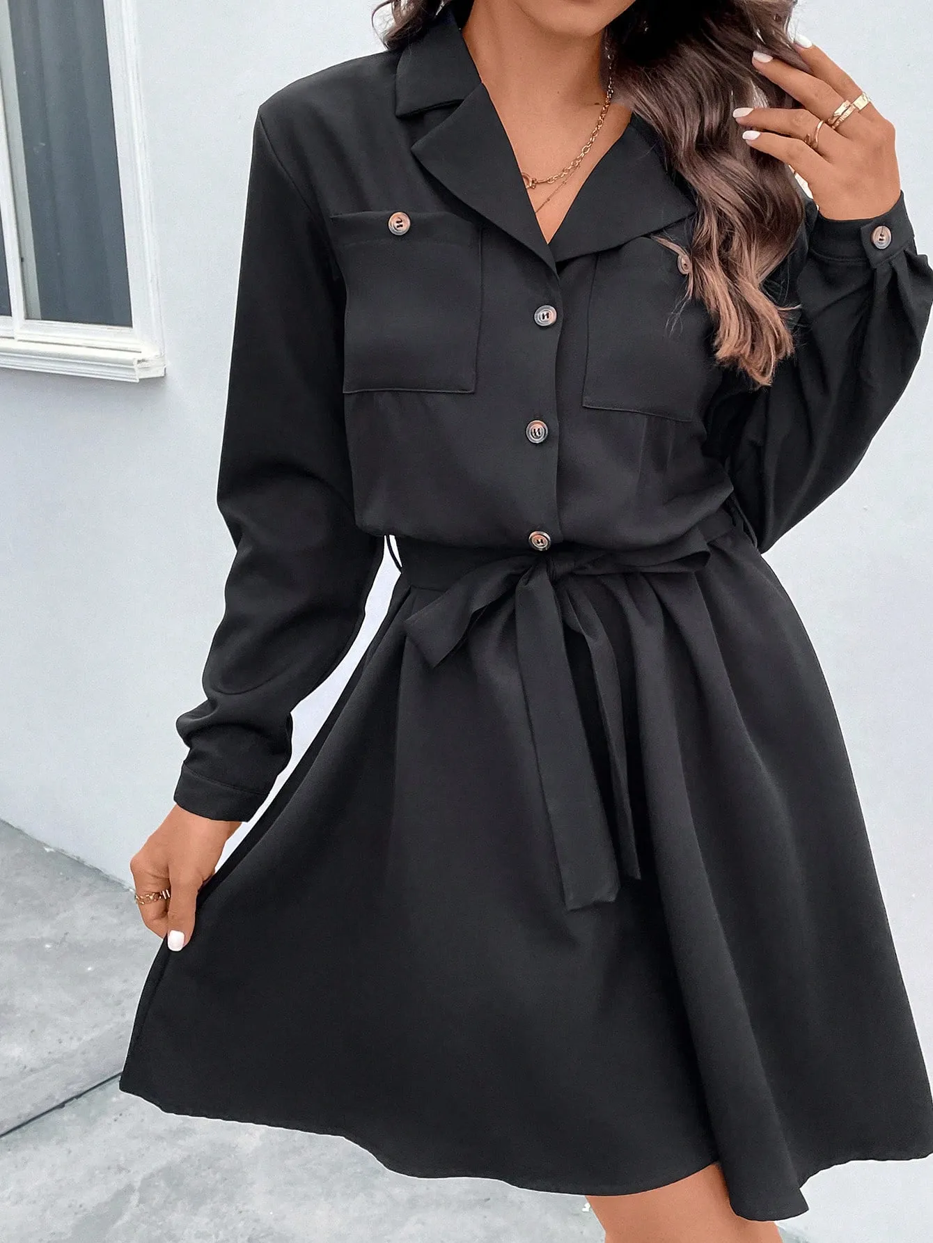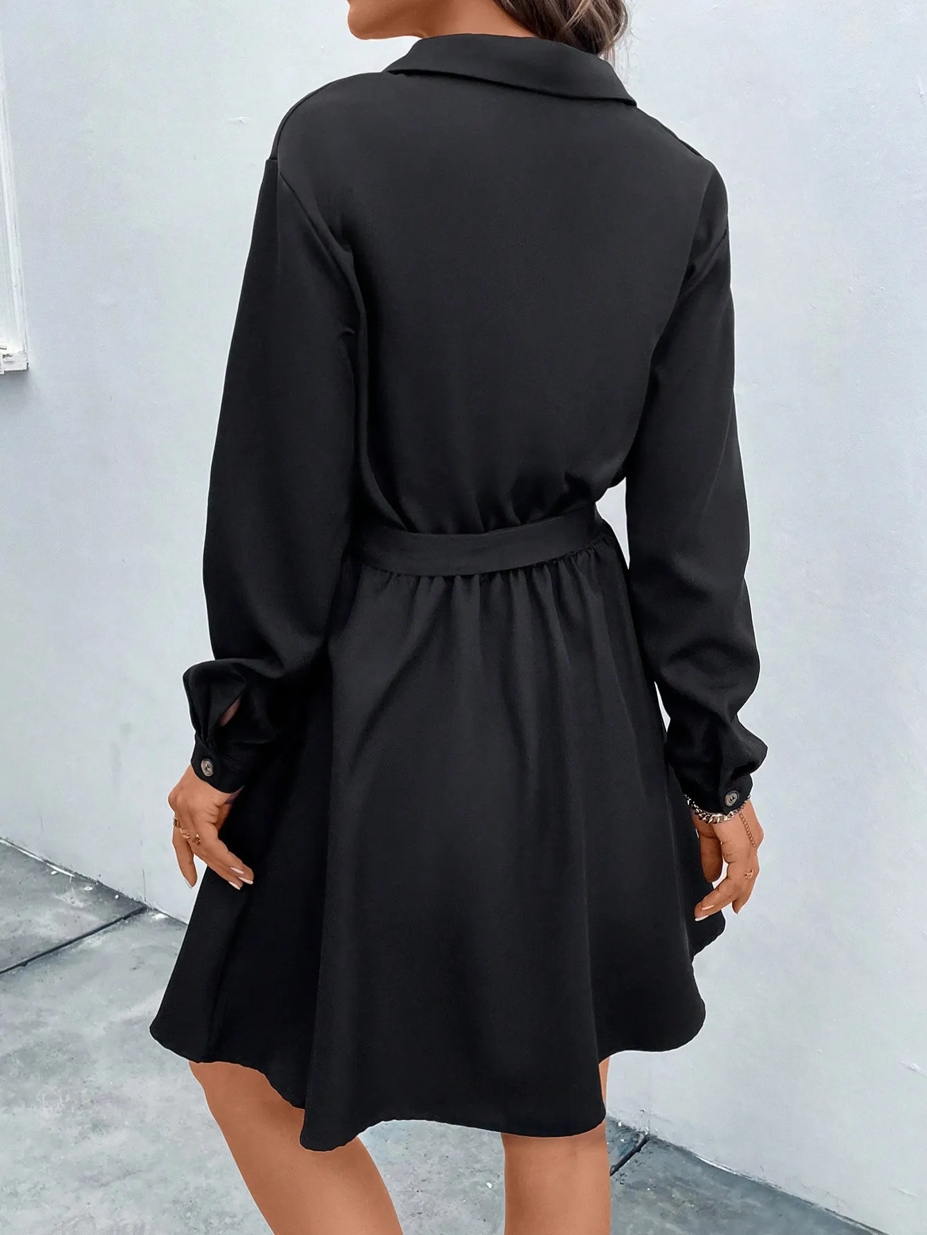SMY Elegant Trend Flat Collar Long Sleeved Dress