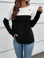 SMY Women’s Casual Contrast Color Patchwork Design Pullover Sweatshirt