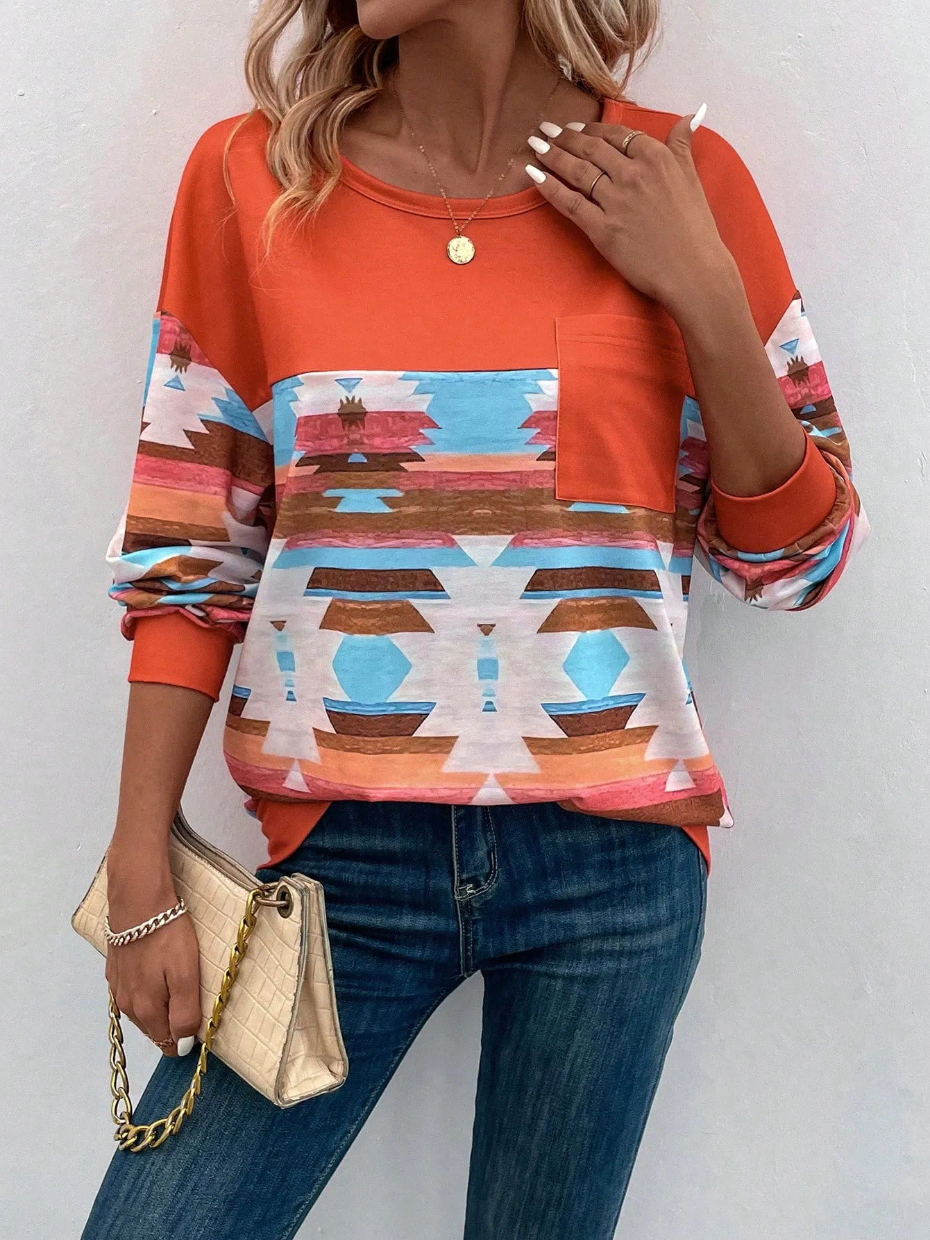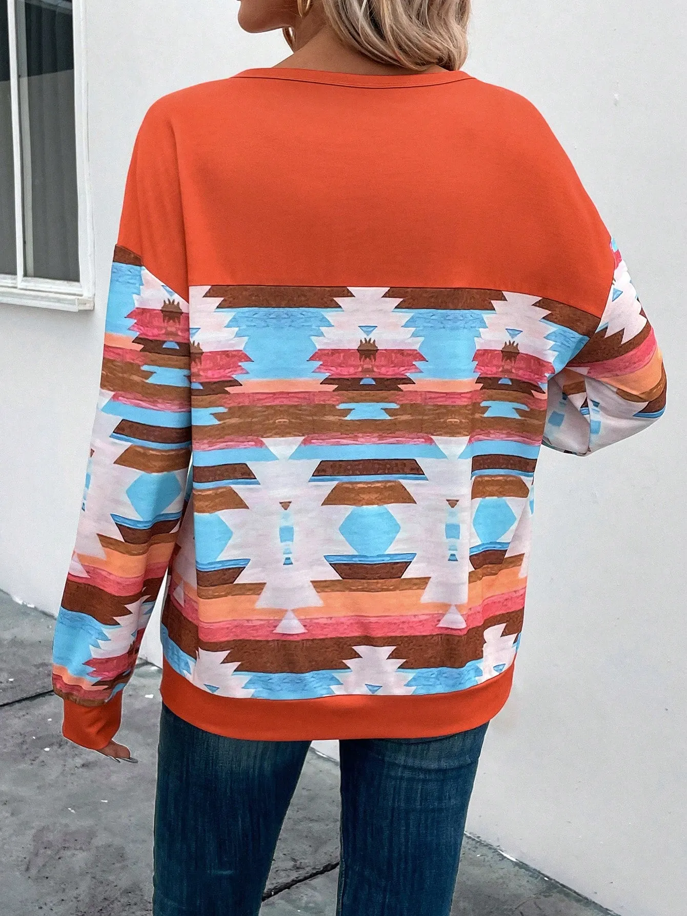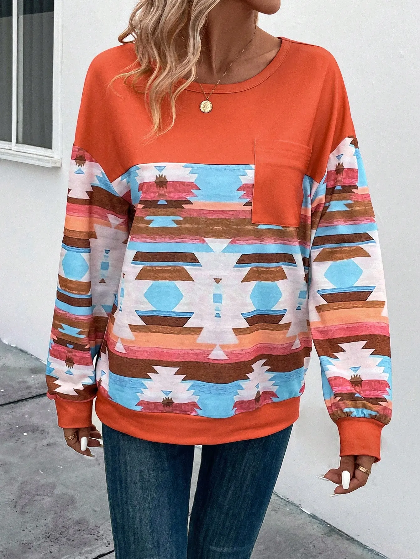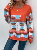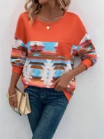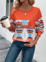 SMY Women’s Casual Contrast Color Patchwork Design Pullover Sweatshirt