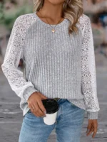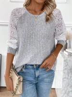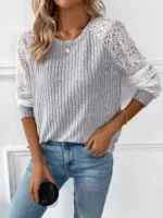 SMY Clasi Women’s Elegant Fashionable Hollow Lace Patchwork Shirt