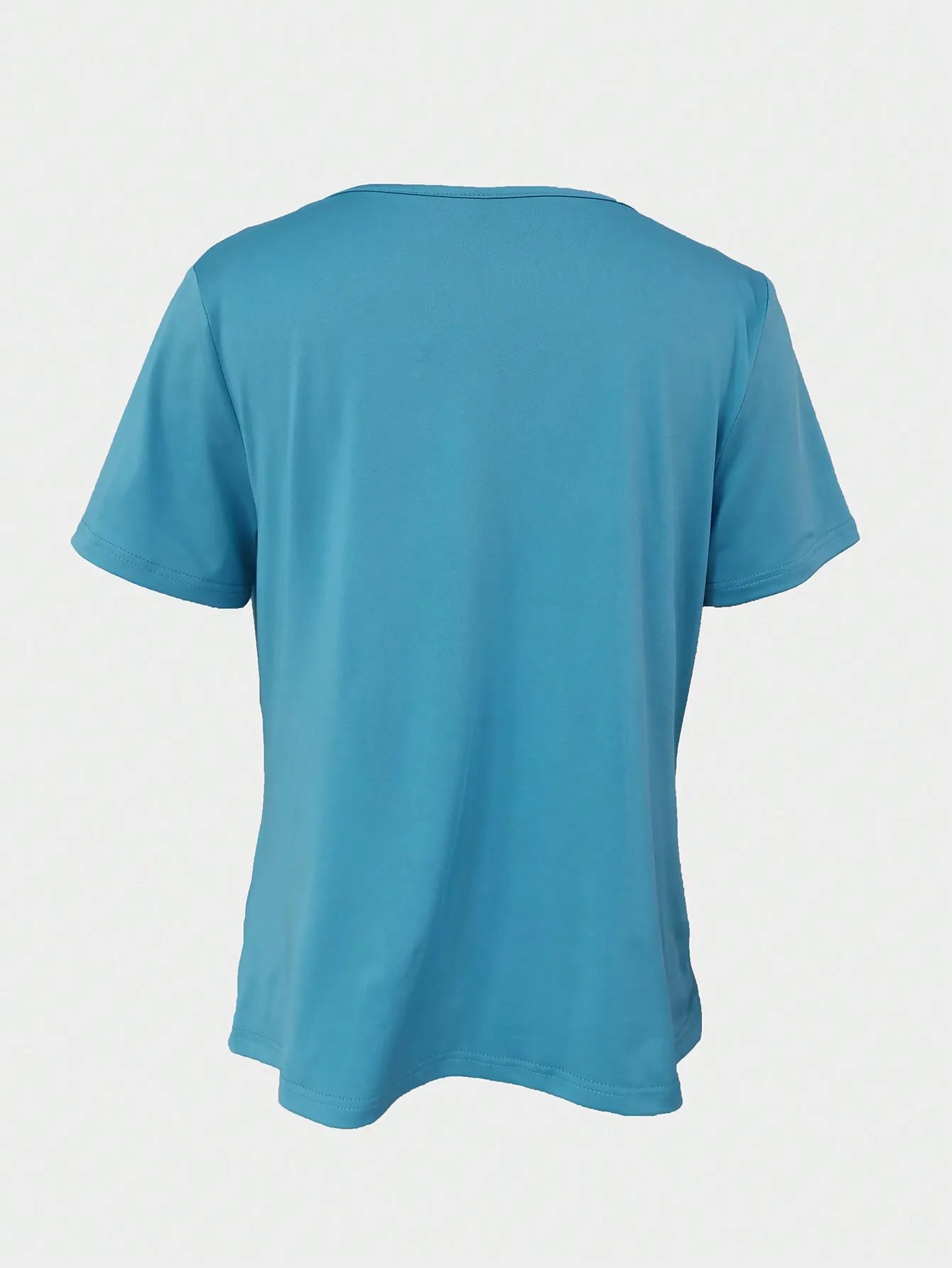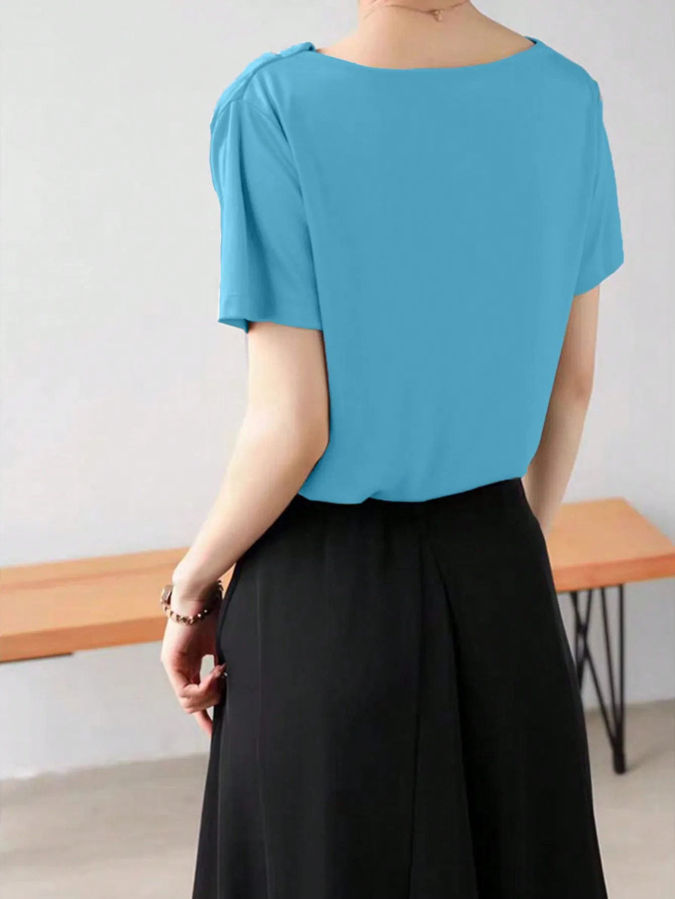 SMY Women’s V-neck Pleated Button Detail Casual T-shirt