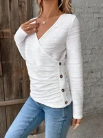 Be the first to review “SMY Gorgeous Trend Deep V-Neck Button T-Shirt” Cancel reply