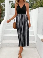 SMY Women’s Geometric Printed Sleeveless V-Neck Dress