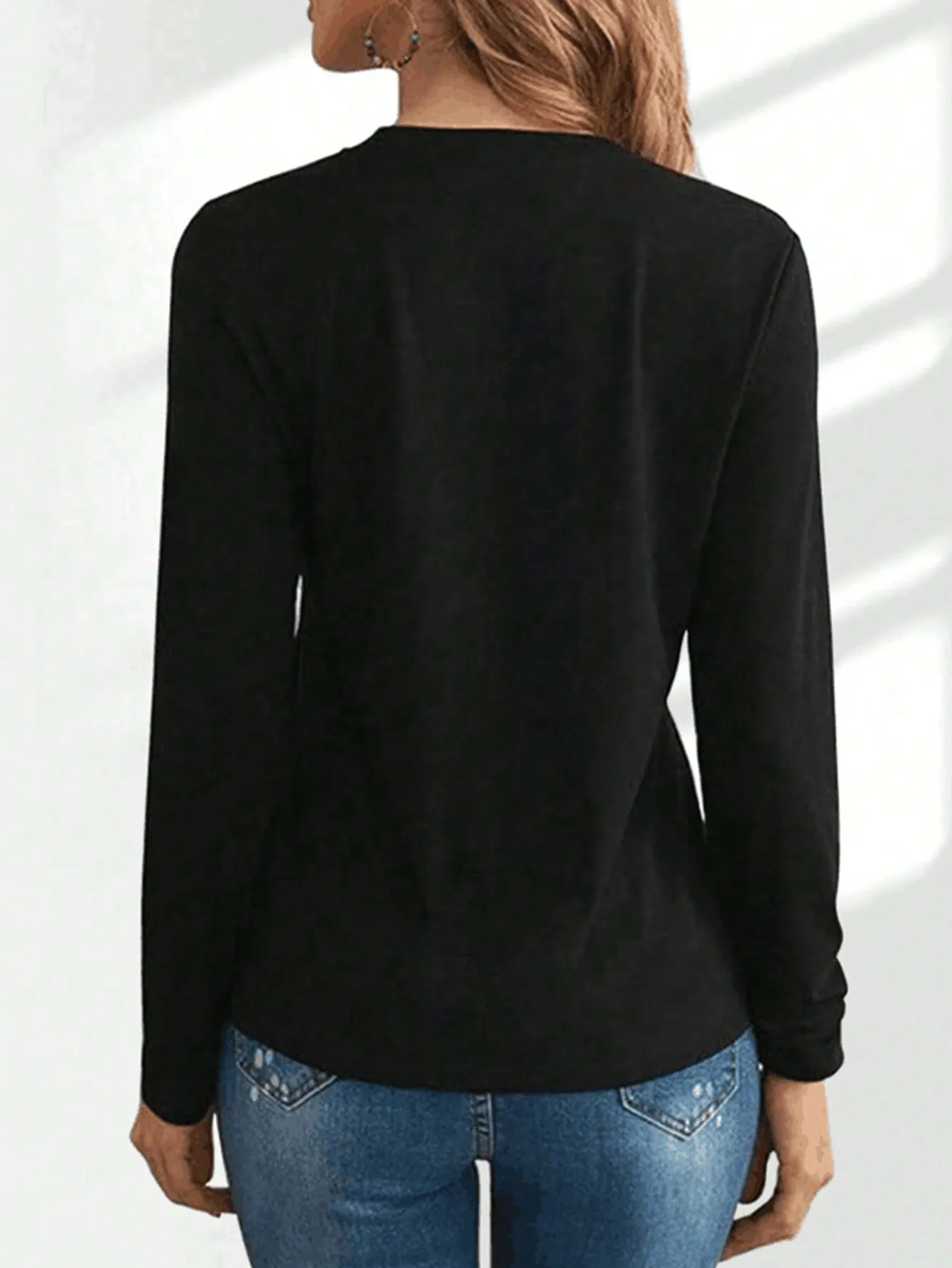 SMY Women’s Solid Color Crossover V-Neck Long Sleeve Pleated Casual T-Shirt
