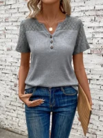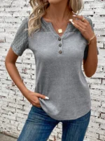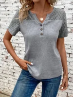 SMY Gorgeous Trend Small V-Neck Solid Button Women’s T-Shirt