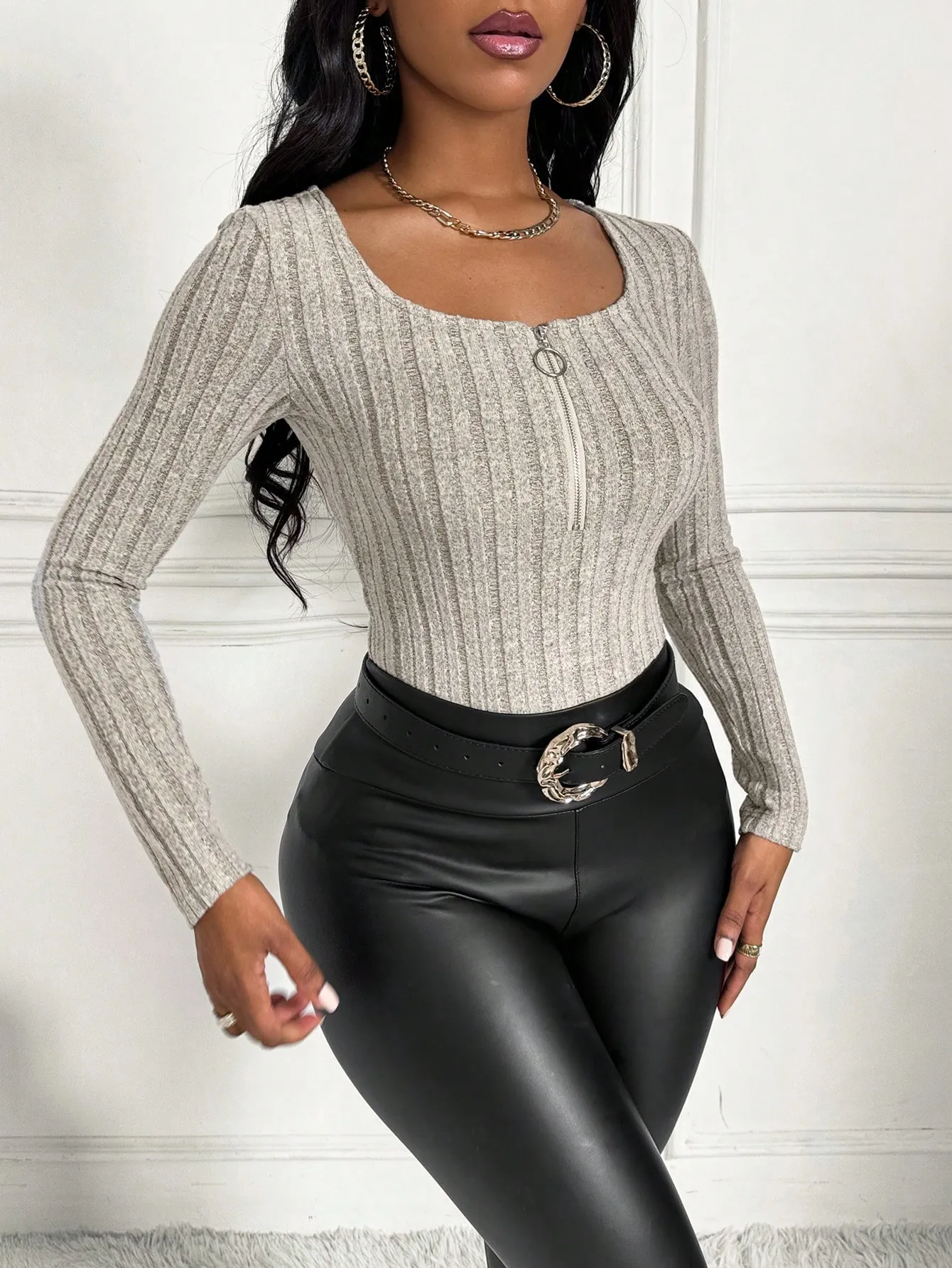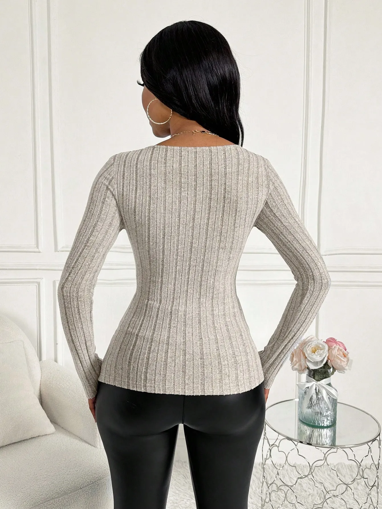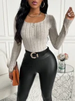 Home Tops Long Sleeve Tops SMY Gorgeous Trend Square Neck T-Shirt