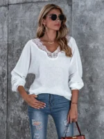 Be the first to review “SMY Lace Stitching Small V-Neck Women’s Top” Cancel reply