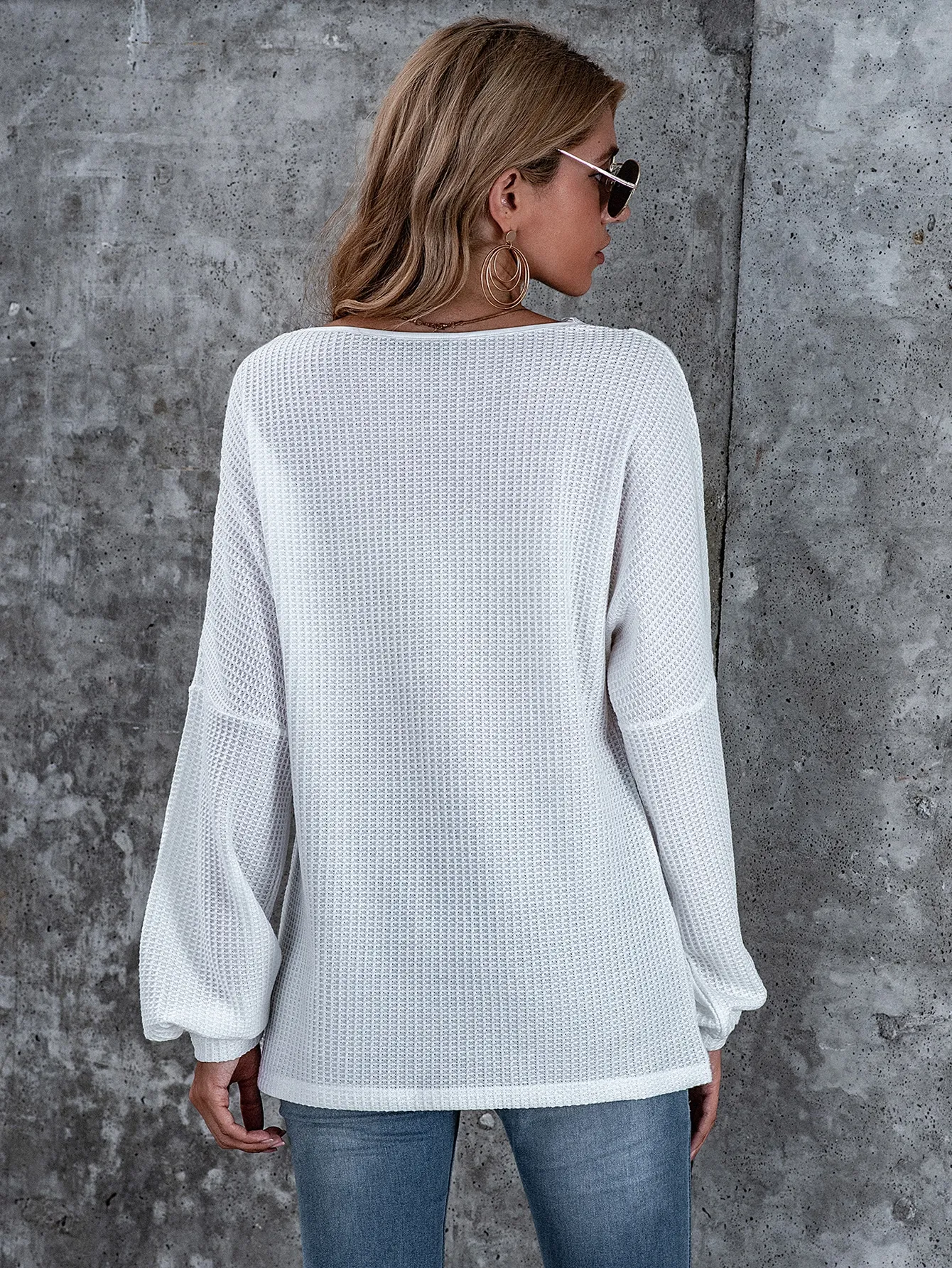 SMY Women’s V-neck Button Decoration Patchwork Long Sleeve Casual T-shirt