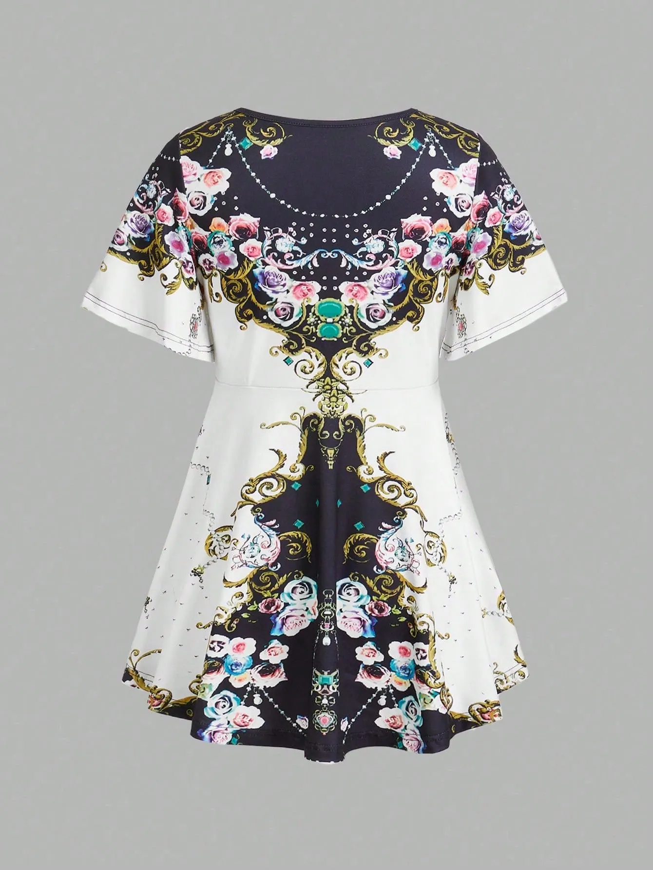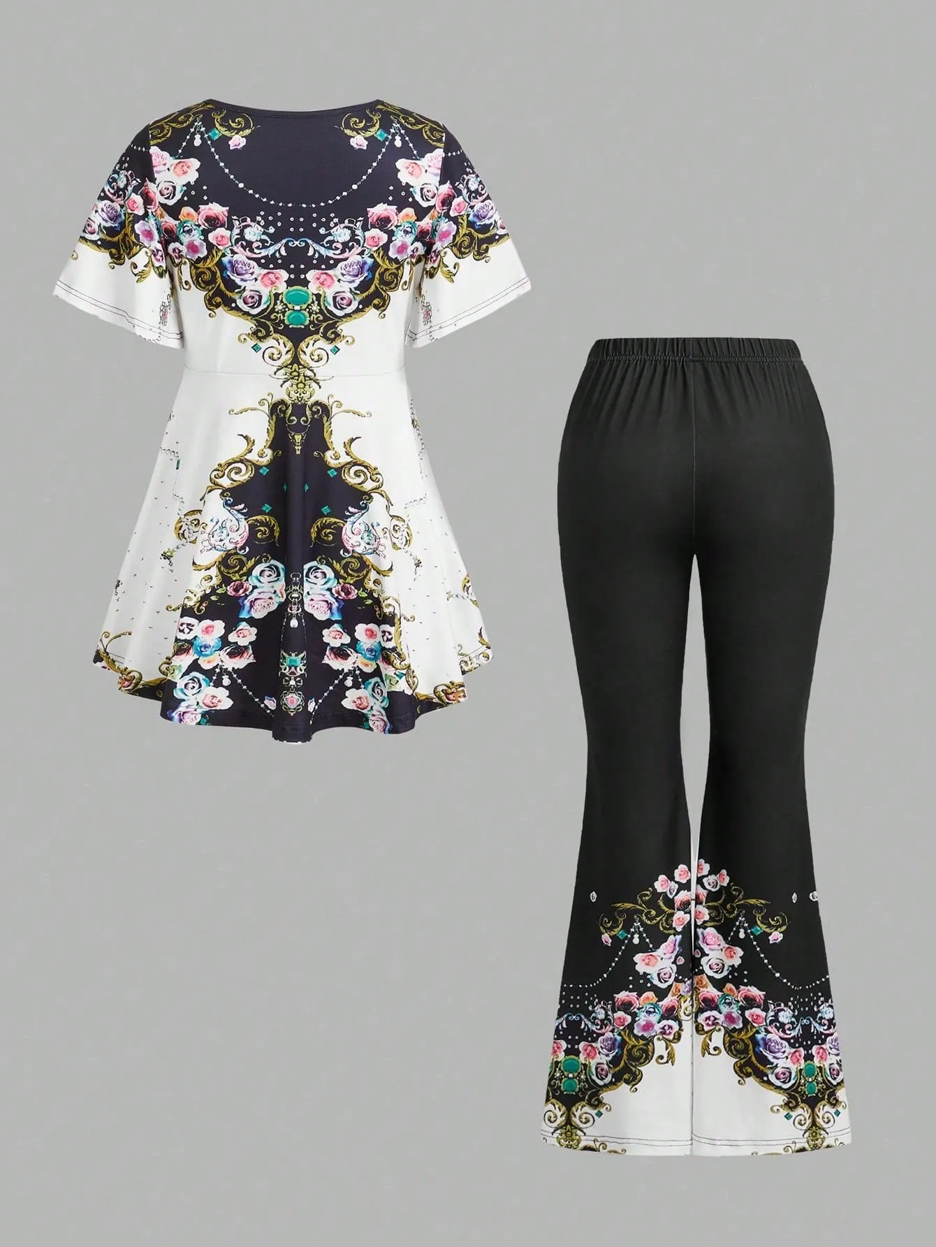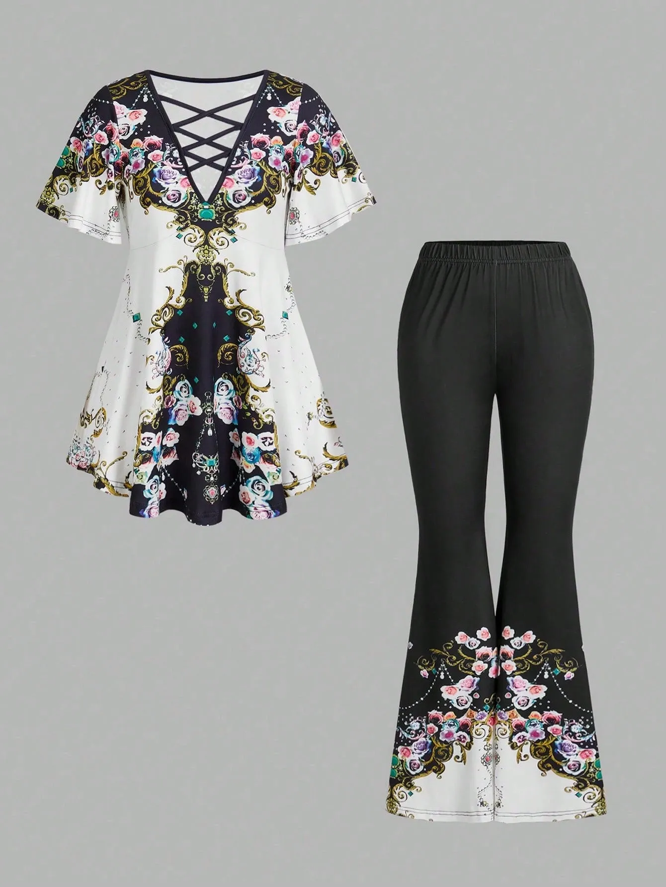 SMY Leisure Deep V-Neck Women’s Special Printed Two-Piece Set