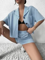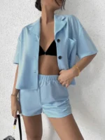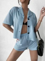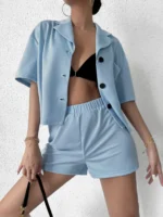 Home Two-piece Outfits Short Sets SMY Leisure Flat Collar Women’s Two-Piece Set
