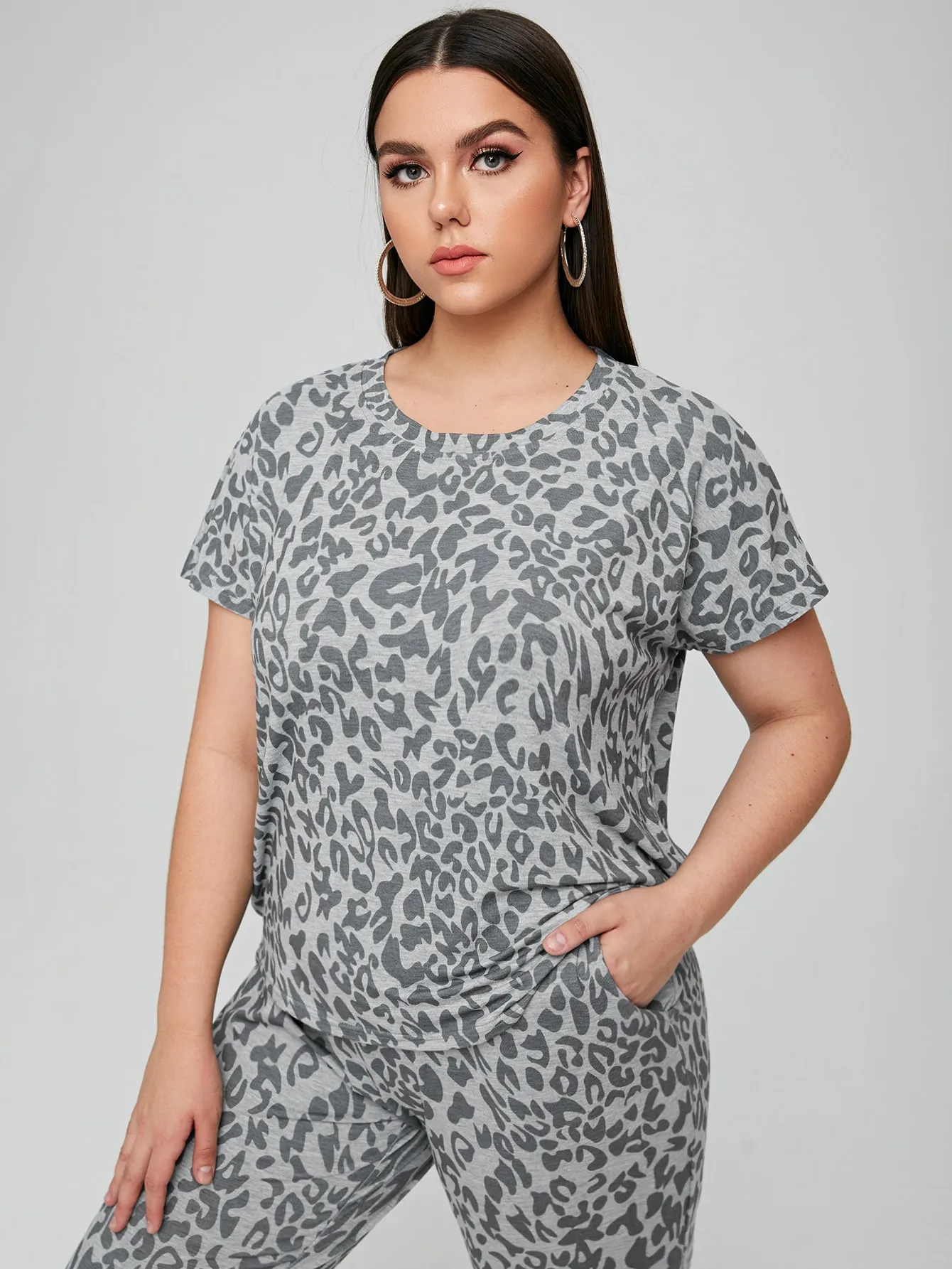 SMY Leisure Small Round Neck Plus Size Two-Piece Set